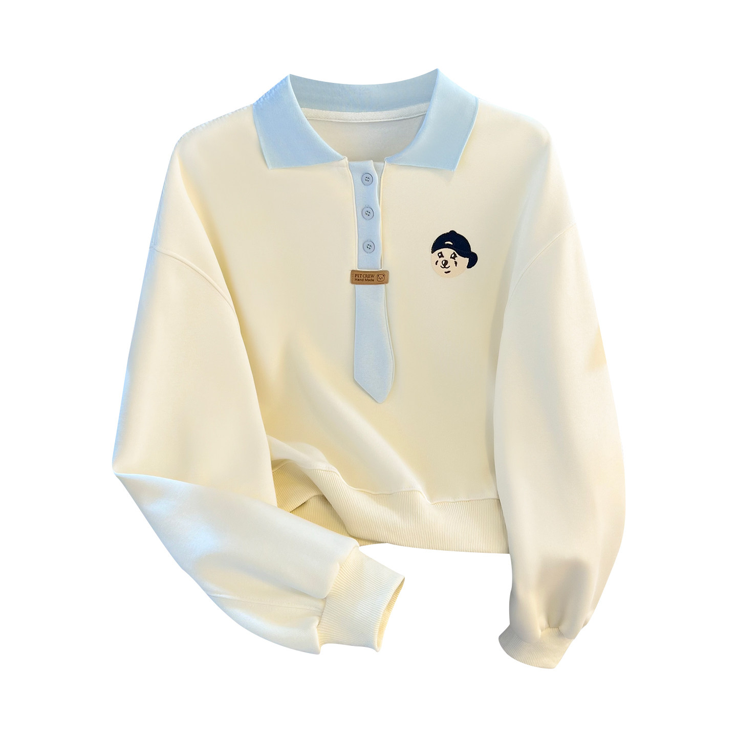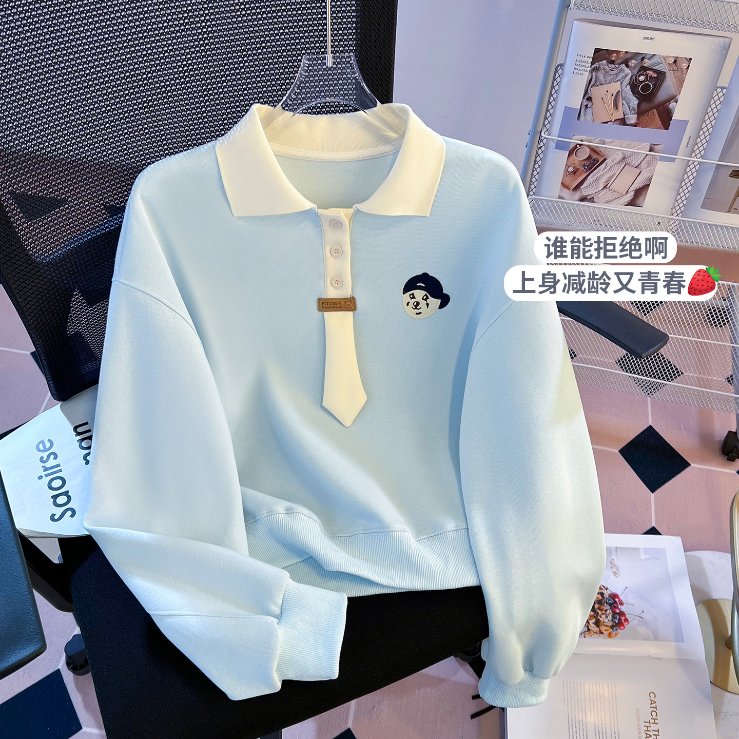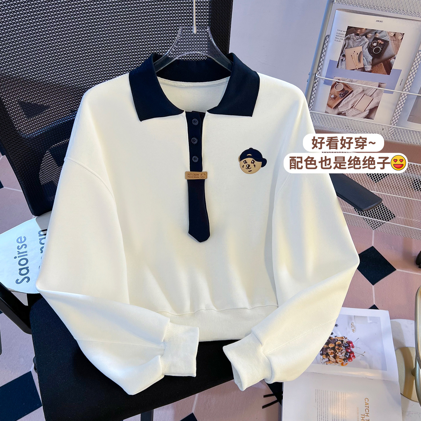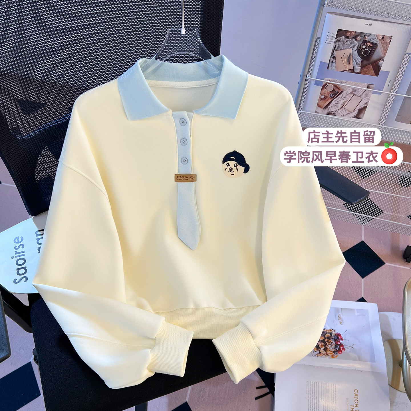 实拍2026年早春新款女装卫衣初中生学院风POLO领休闲穿搭韩系上衣