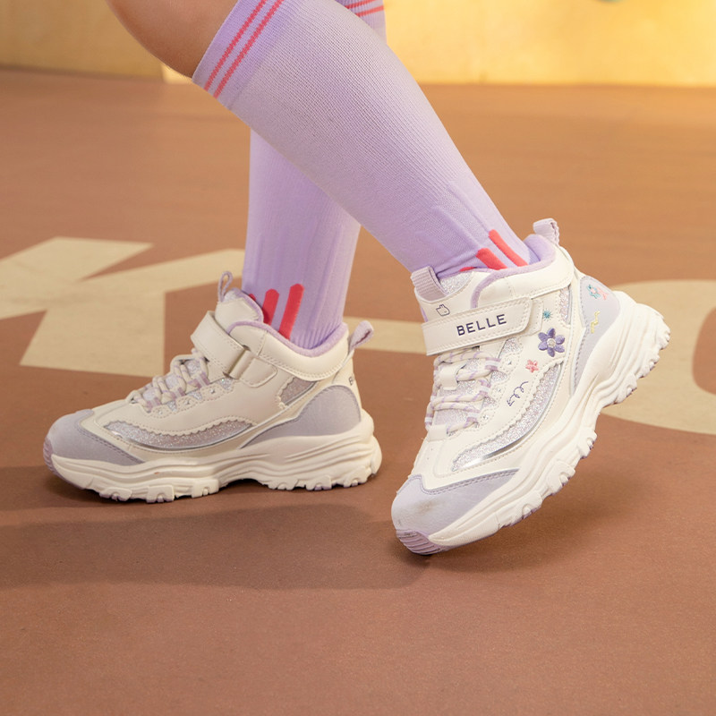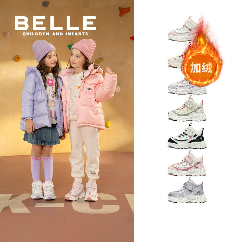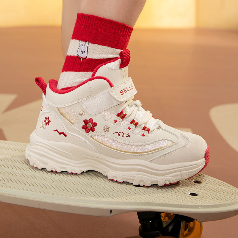 花影丨百丽童鞋女童老爹鞋2025冬季新款儿童加绒运动鞋高帮休闲鞋