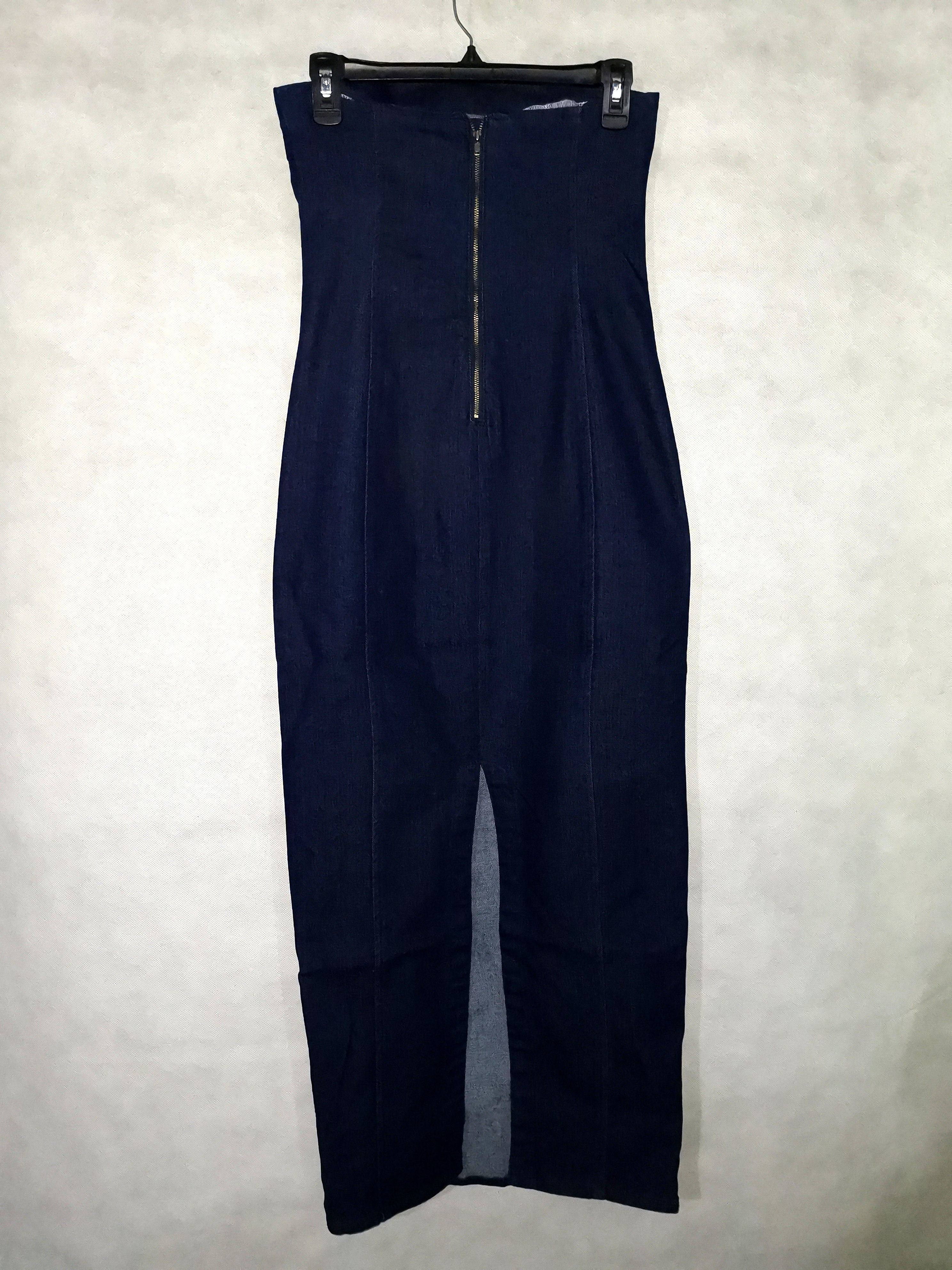 秋冬新外贸原单大牌长款弹力修身显瘦收腰抹胸开叉牛仔连衣裙礼服