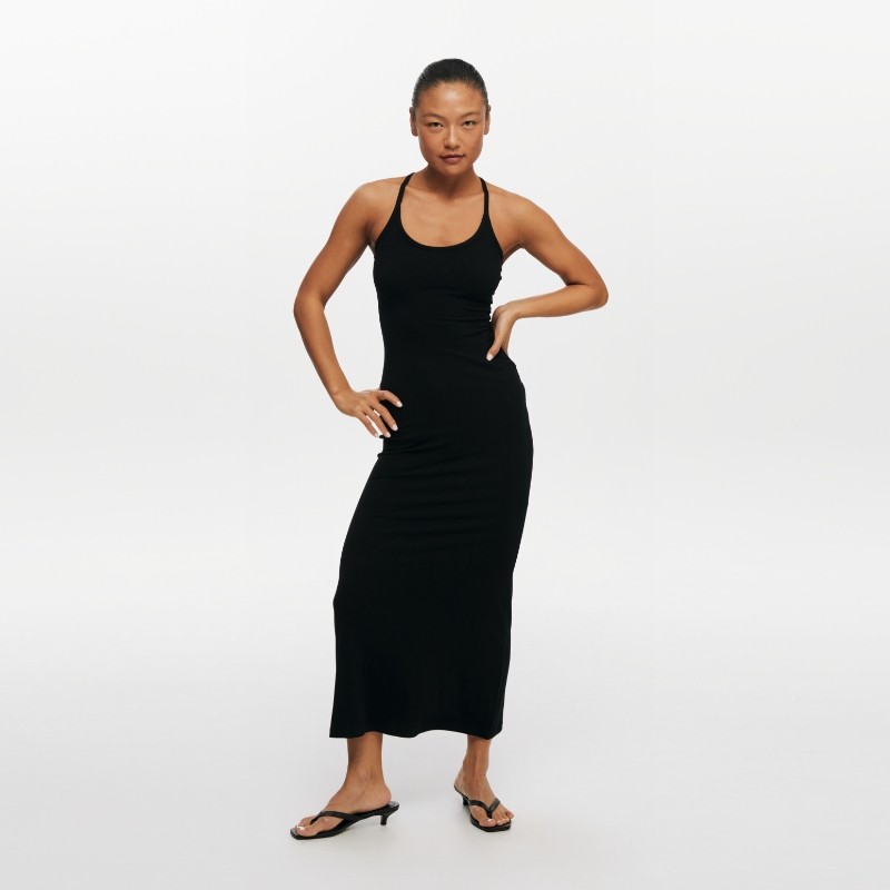 oneup工字背长款连衣裙女夏季小个子修身黑色长裙垂坠感鱼尾裙子