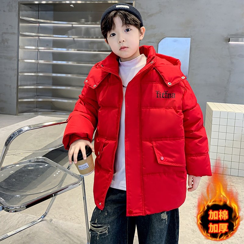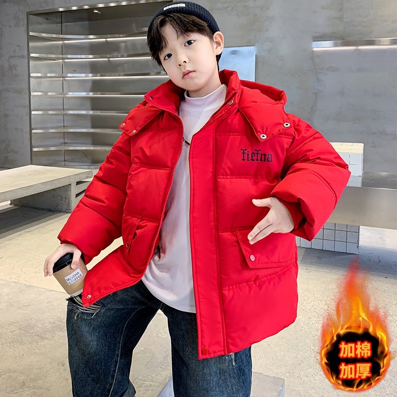 男童冬装羽绒棉服2025新款中大童冬季棉袄儿童本命年红色棉衣外套