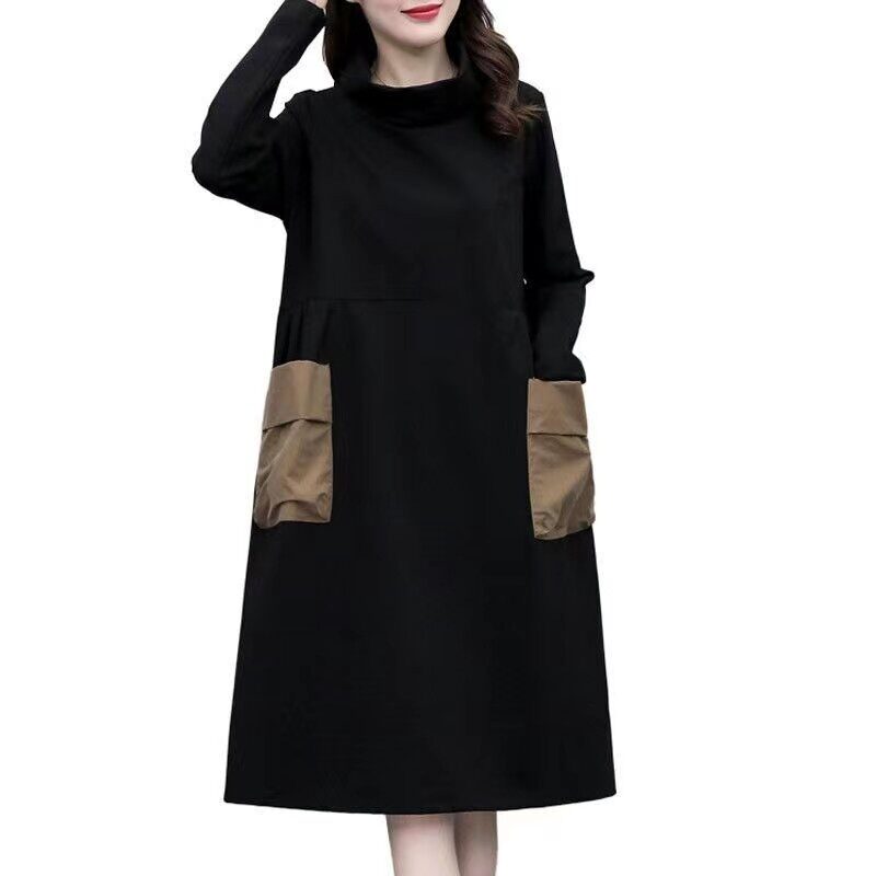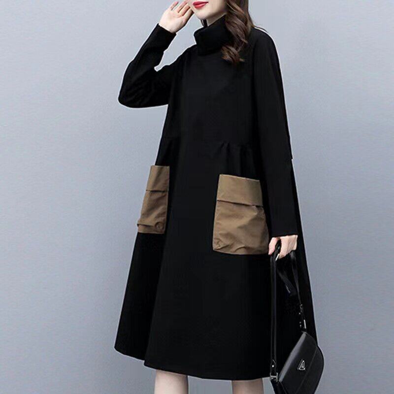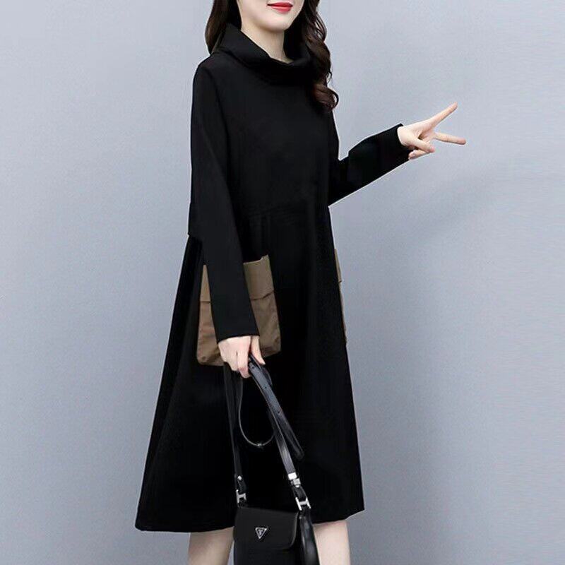 大码胖mm200斤复古文艺连衣裙女宽松秋冬装洋气加绒加厚打底裙子