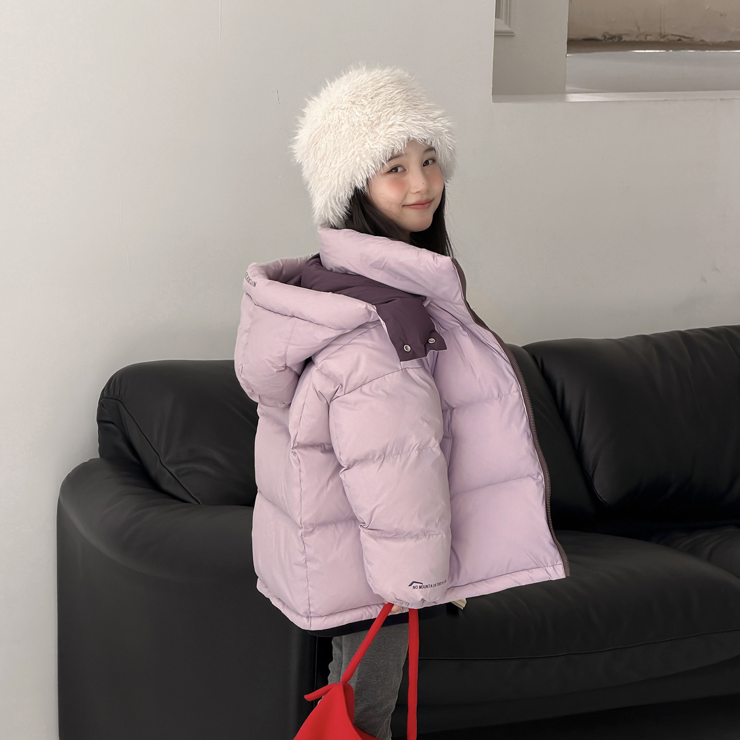 可拆帽女童双面穿羽绒服2025新款中大童儿童短款连帽羽绒外套女款
