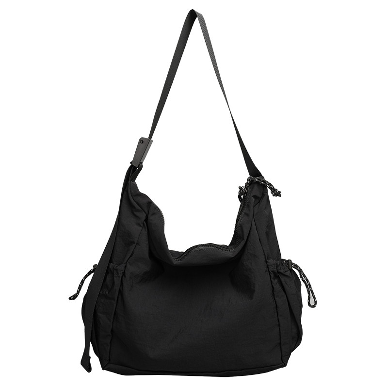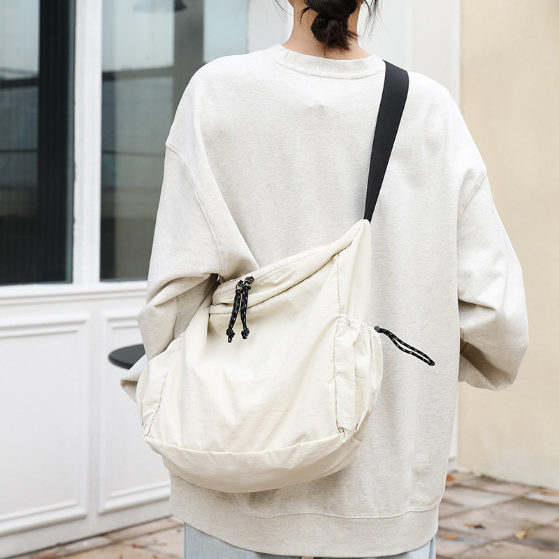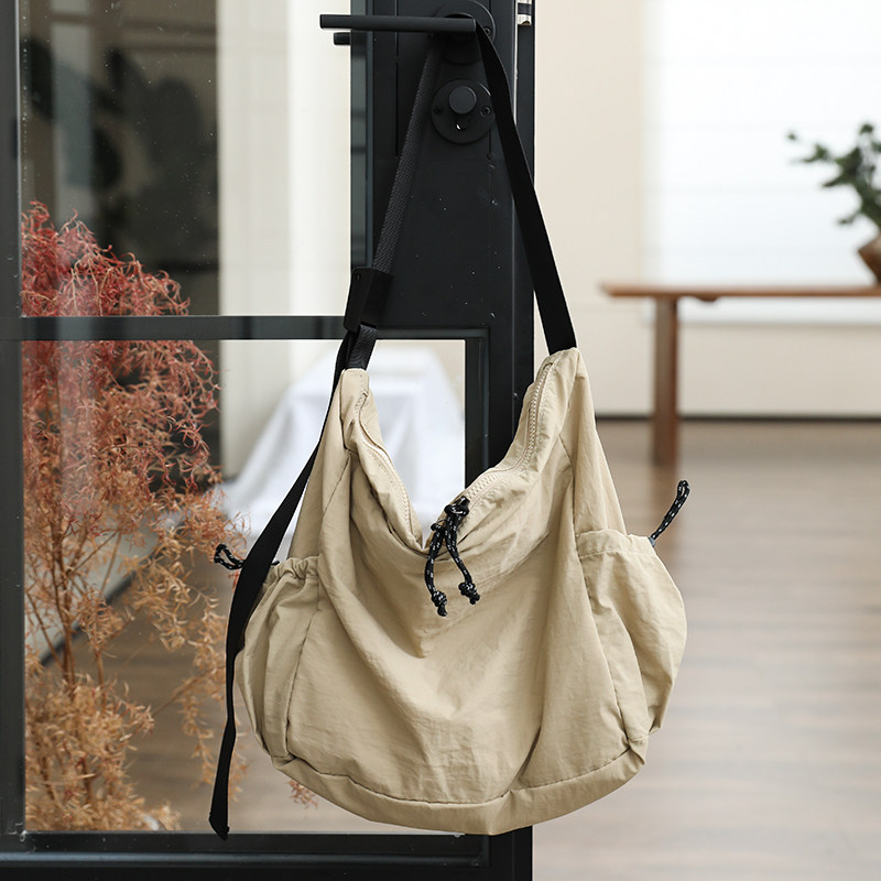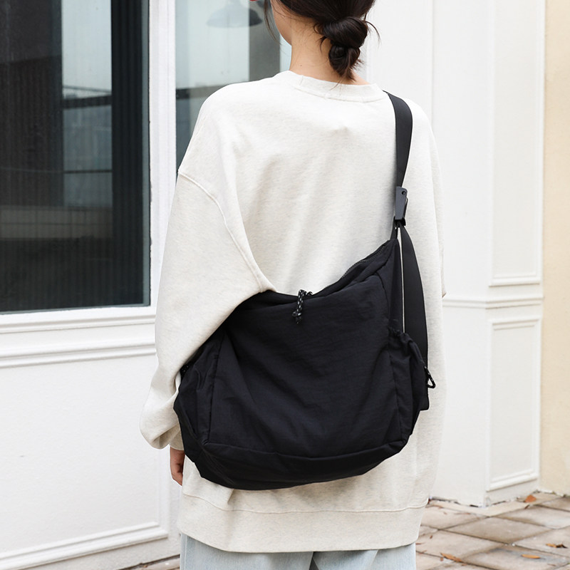 日系拉链尼龙帆布包女大容量宽肩带单肩斜挎包休闲百搭运动健身包
