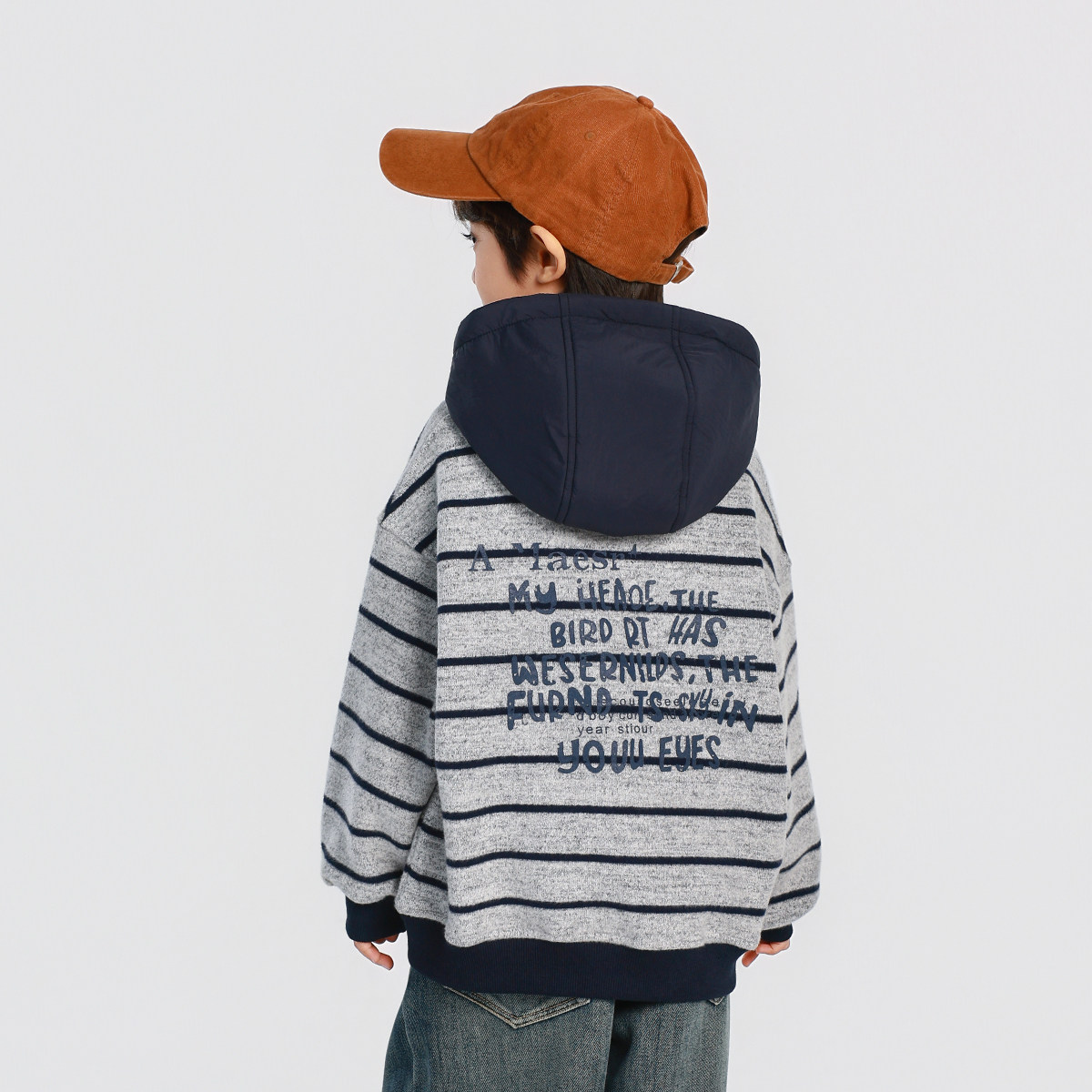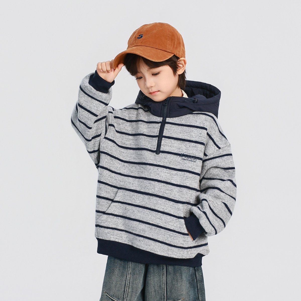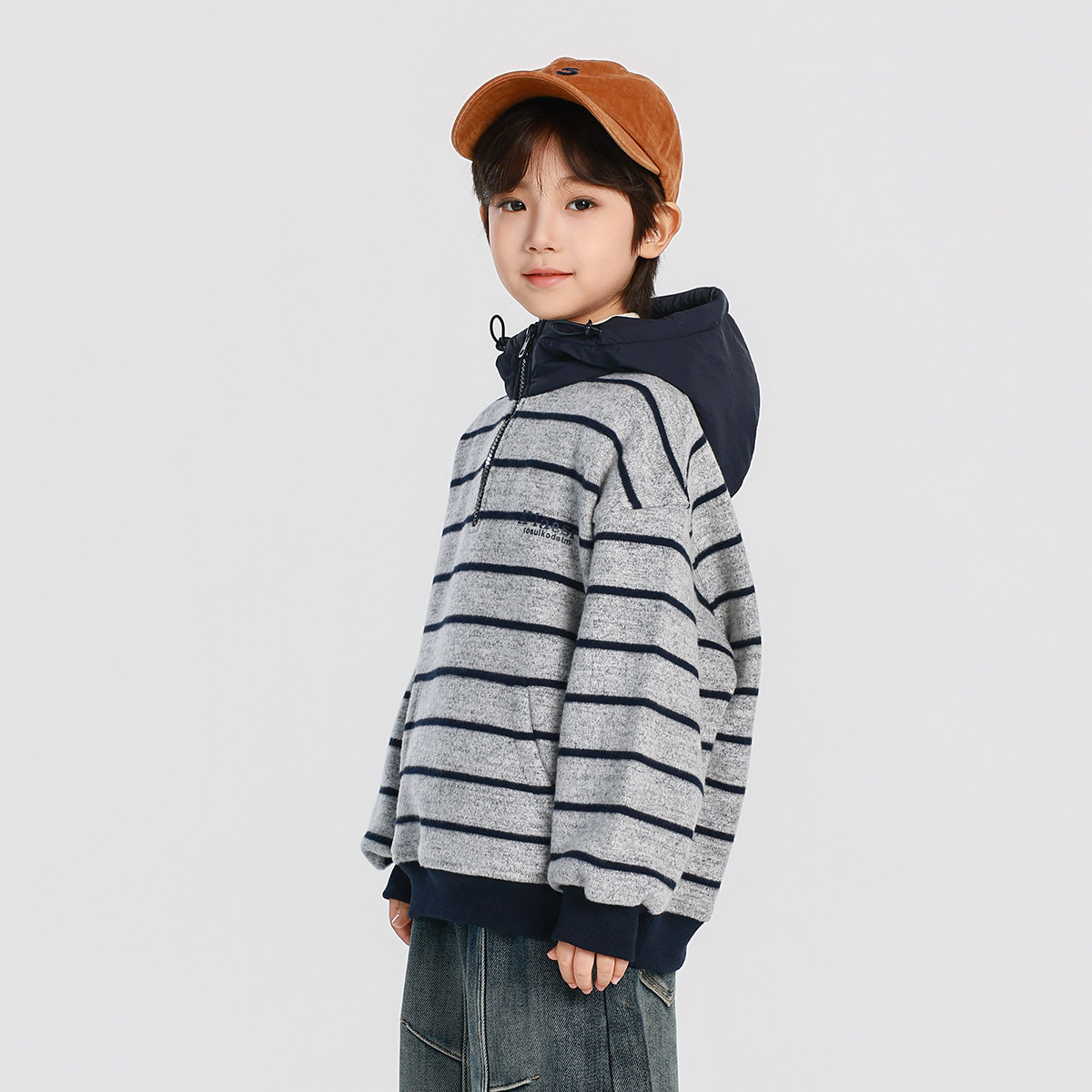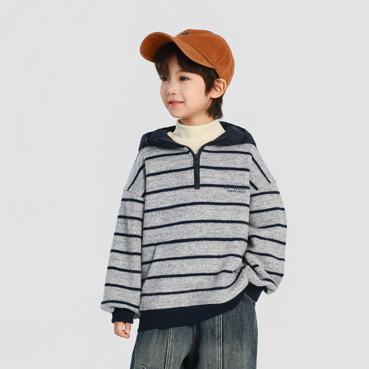 男童加绒卫衣2025秋冬新款儿童加绒加厚一体绒连帽条纹上衣冬装