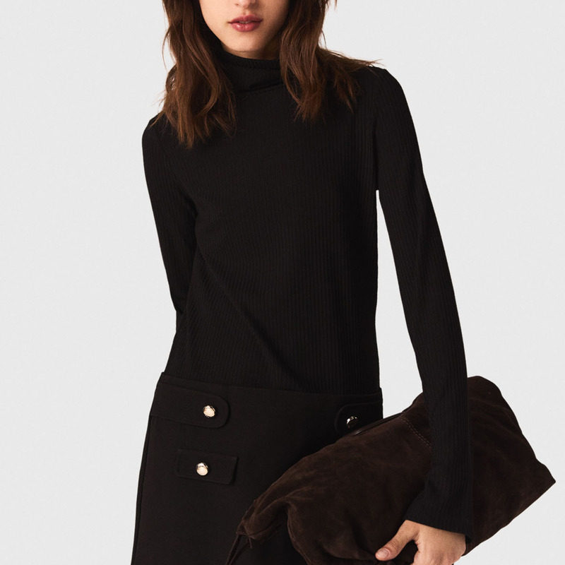 311线报网描述:时尚口袋纽扣装饰 高领长袖短款款式