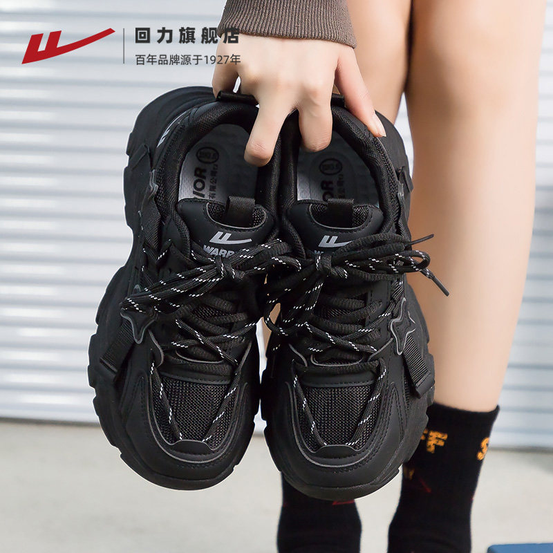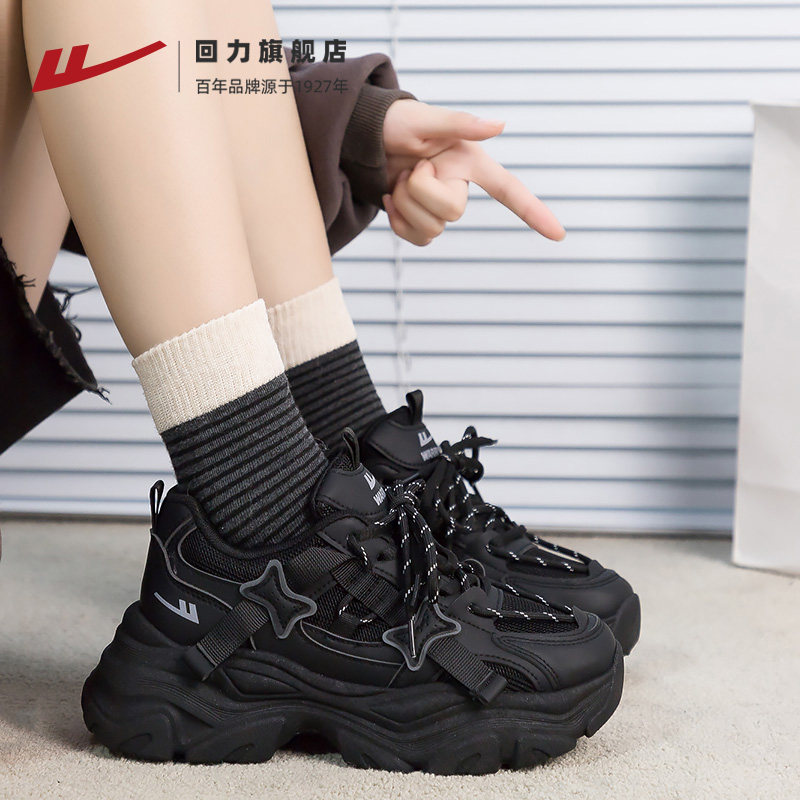 回力黑色运动鞋子女款2026新款春季女鞋ins小个子休闲厚底老爹鞋