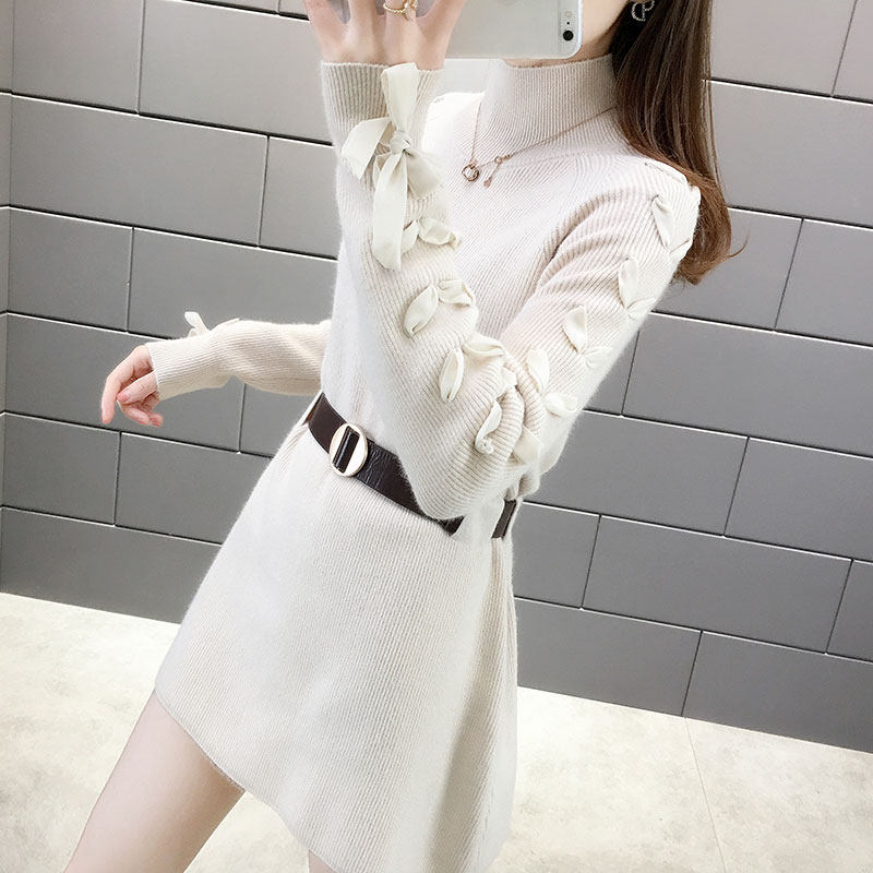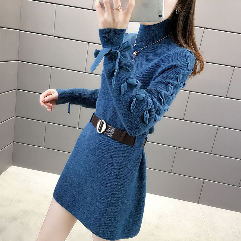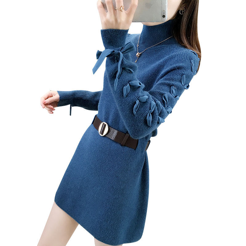 高领毛衣女2025新款针织加绒小个子秋冬季高级感中长款收腰连衣裙