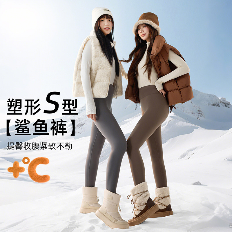 健身女孩高腰裸感瑜伽裤无尴尬线收腹提臀普拉提加绒紧身运动长裤