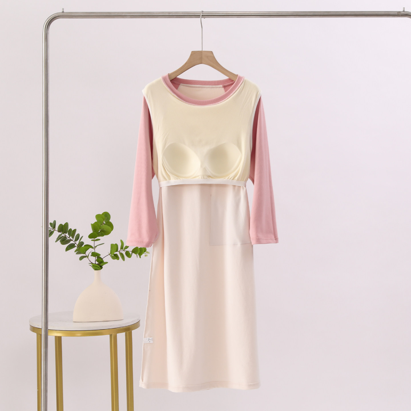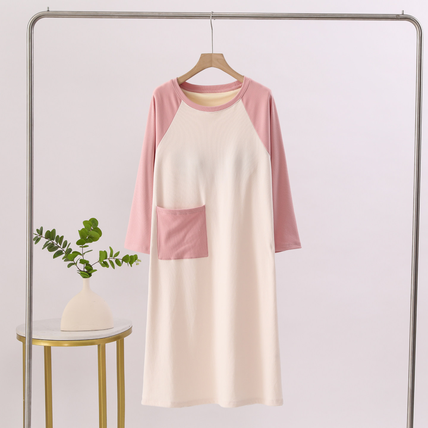 2025新款女秋冬季慕斯暖绒带胸垫一体长袖加绒加厚过膝保暖连衣裙