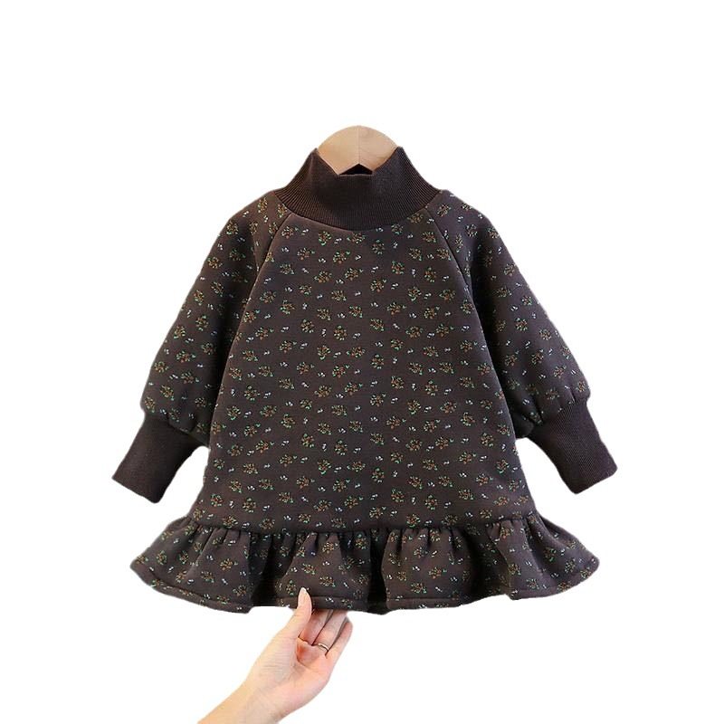 女童加绒卫衣裙冬季新款儿童一体绒加厚连衣裙洋气宝宝公主打底衫