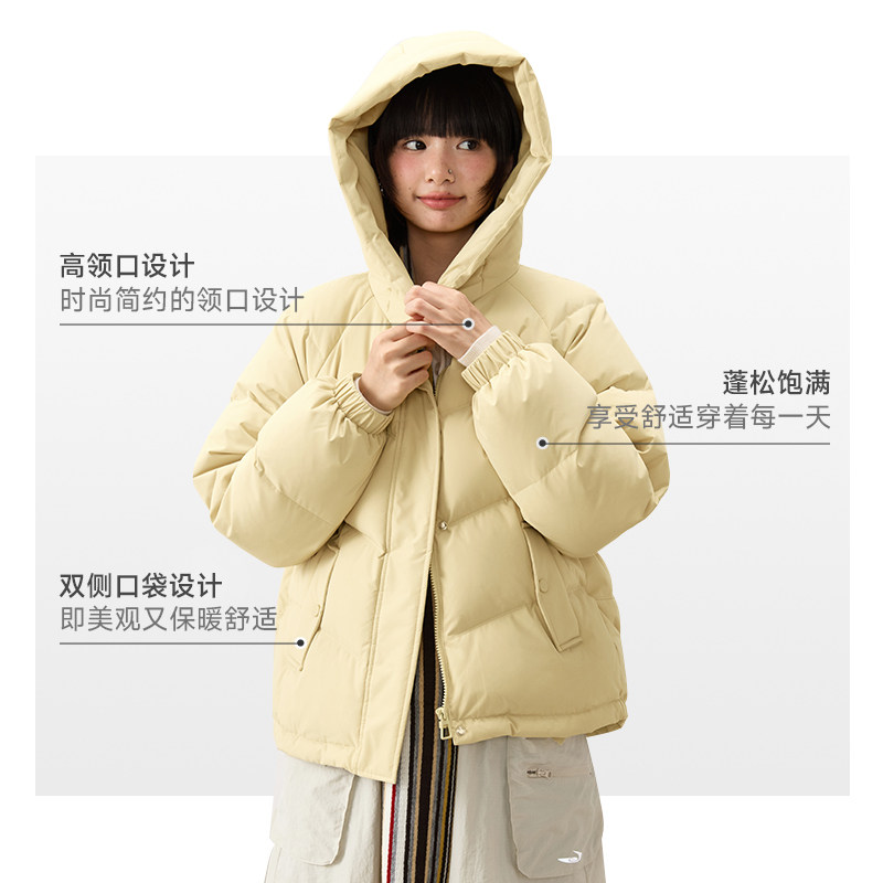 回力黄色短款羽绒服女连帽2026新款加厚白鸭绒小个子上衣冬季外套