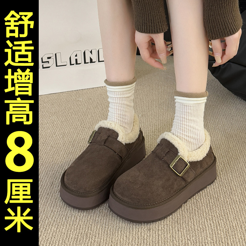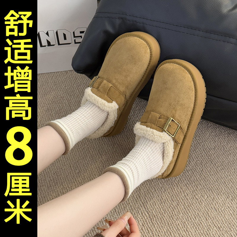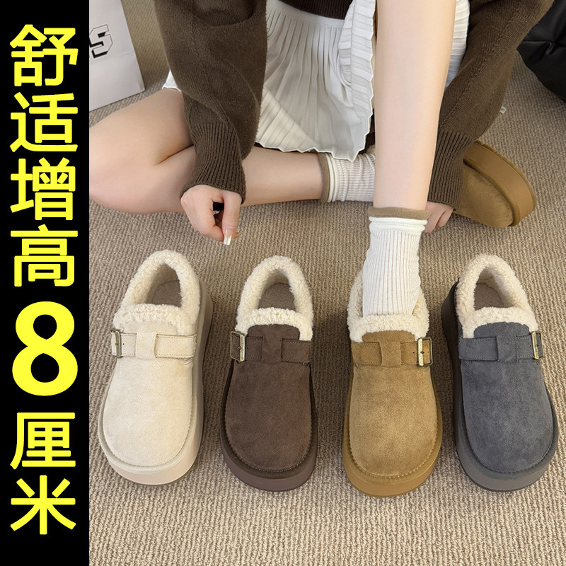 内增高加绒加厚勃肯鞋女2025新款冬季保暖厚底雪地靴防滑毛毛棉鞋