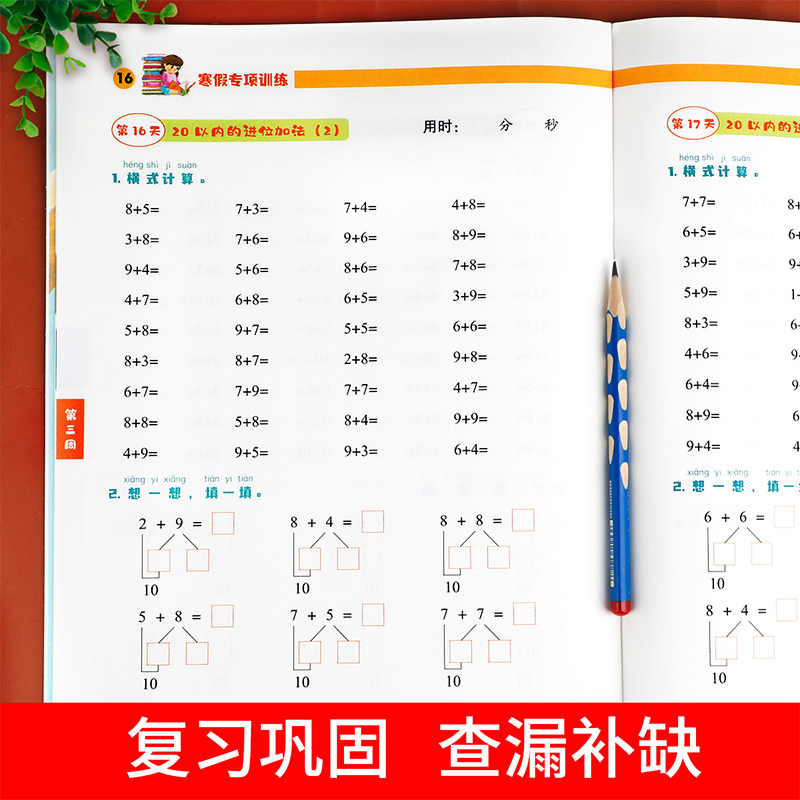 一年级寒假口算天天练人教版数学应用题专项训练寒假作业衔接 小学1上册下册口算题卡心算速算练习本练习册连加连减口算题预习复习