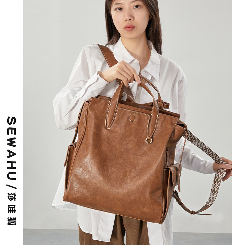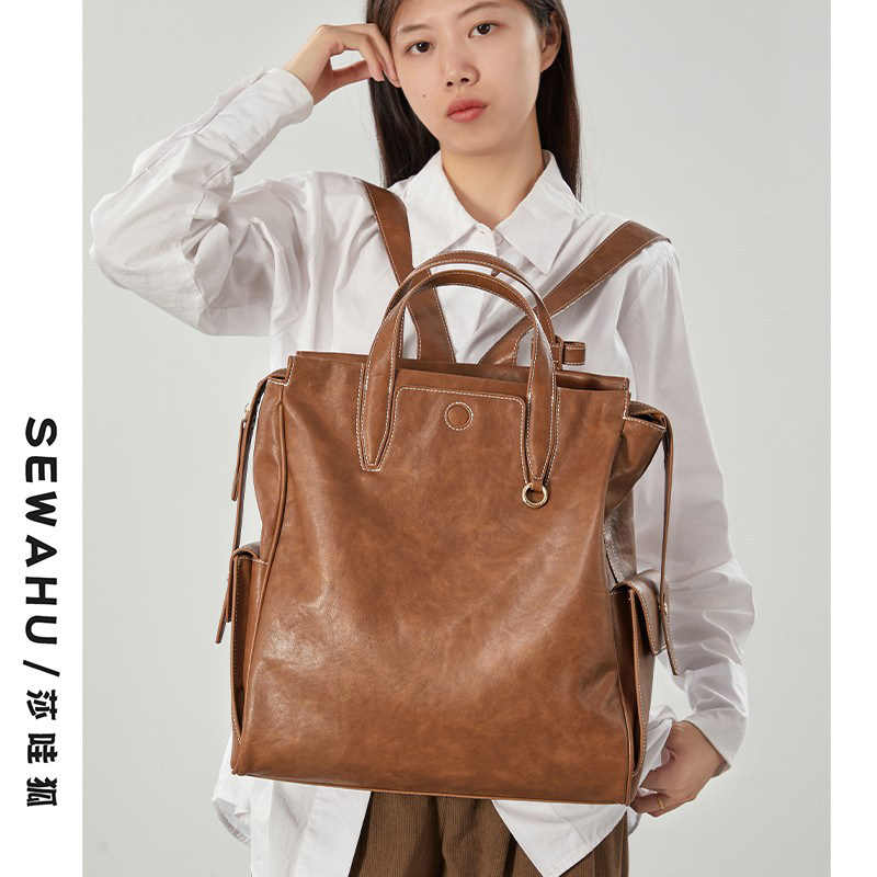 高级感小众双肩包男女上班通勤电脑包大容量旅行背包女士皮质书包