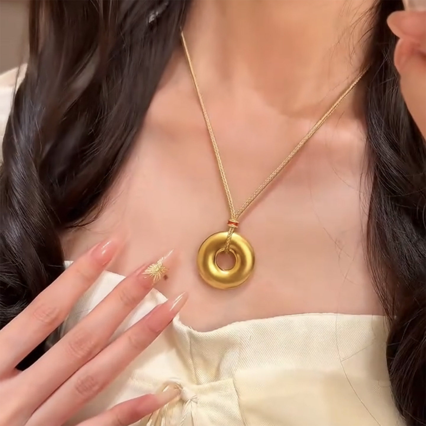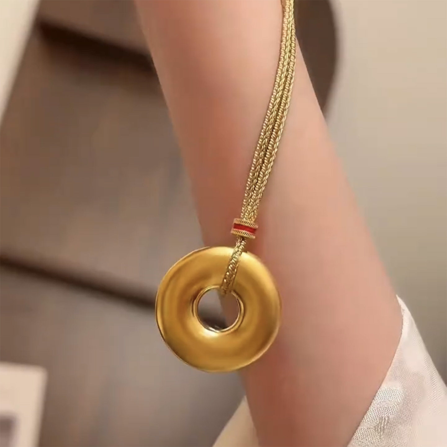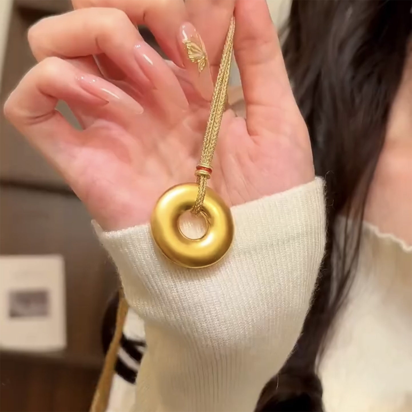 平安扣吊坠新款编绳古法传承甜甜圈项链黄金色实心越南沙金毛衣链