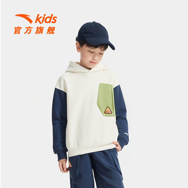 安踏儿童卫衣男童针织连帽套头衫2026秋冬款舒适亲肤商场同款卫衣