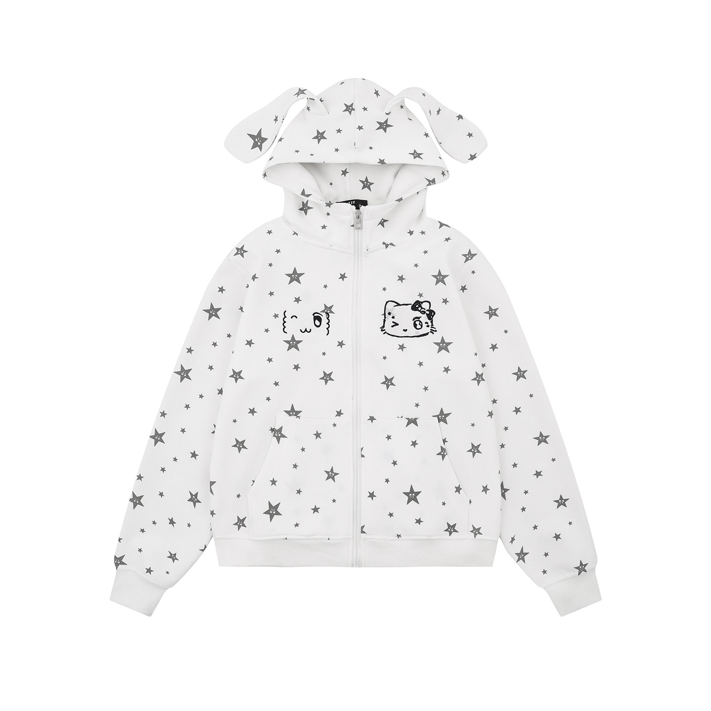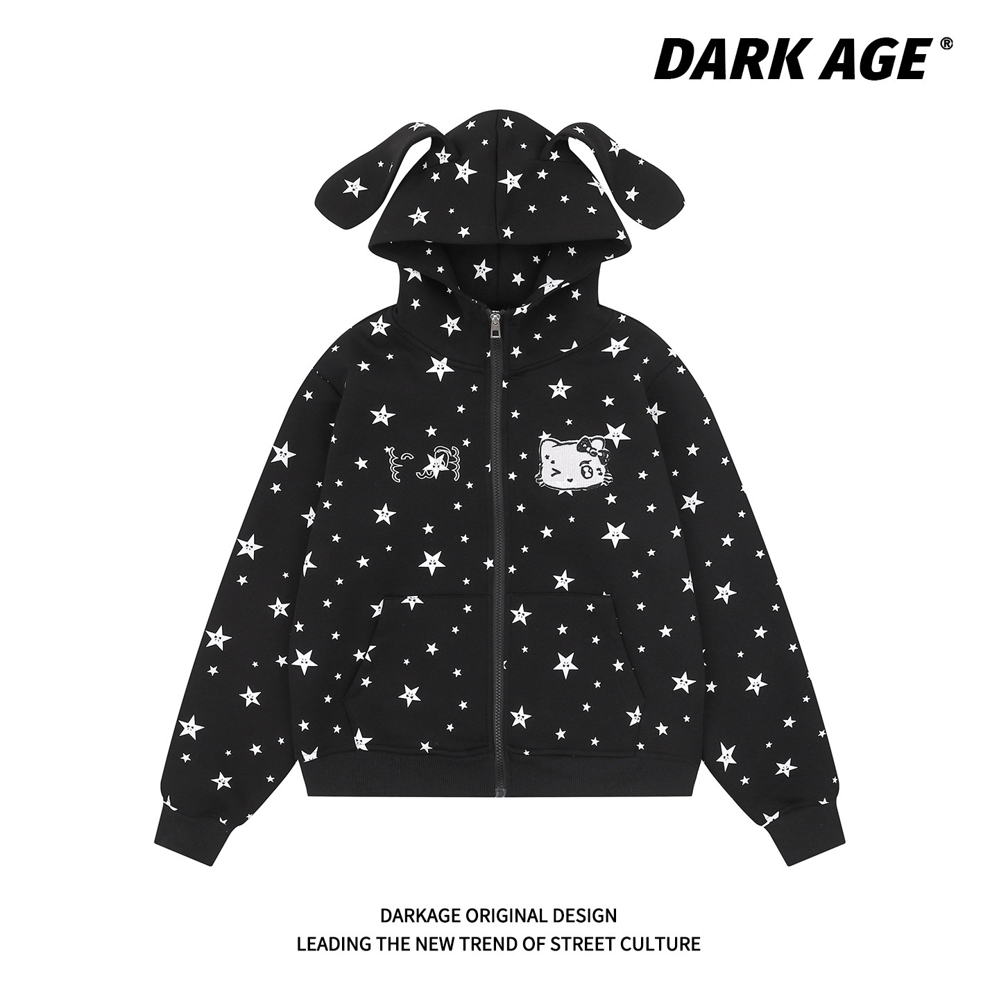 DARKAGE美式潮牌满印星星耳朵连帽卫衣女款秋冬小众拉链外套上衣
