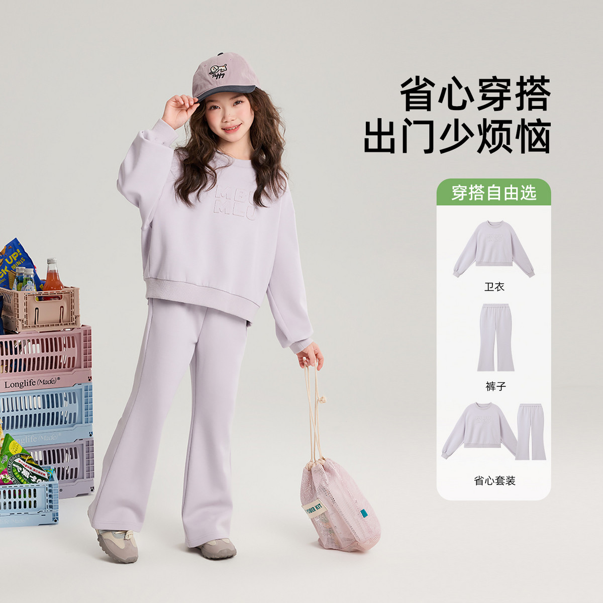 布丁哈鲁春装女童童百搭上衣2026春季新款儿童简约韩系运动套装