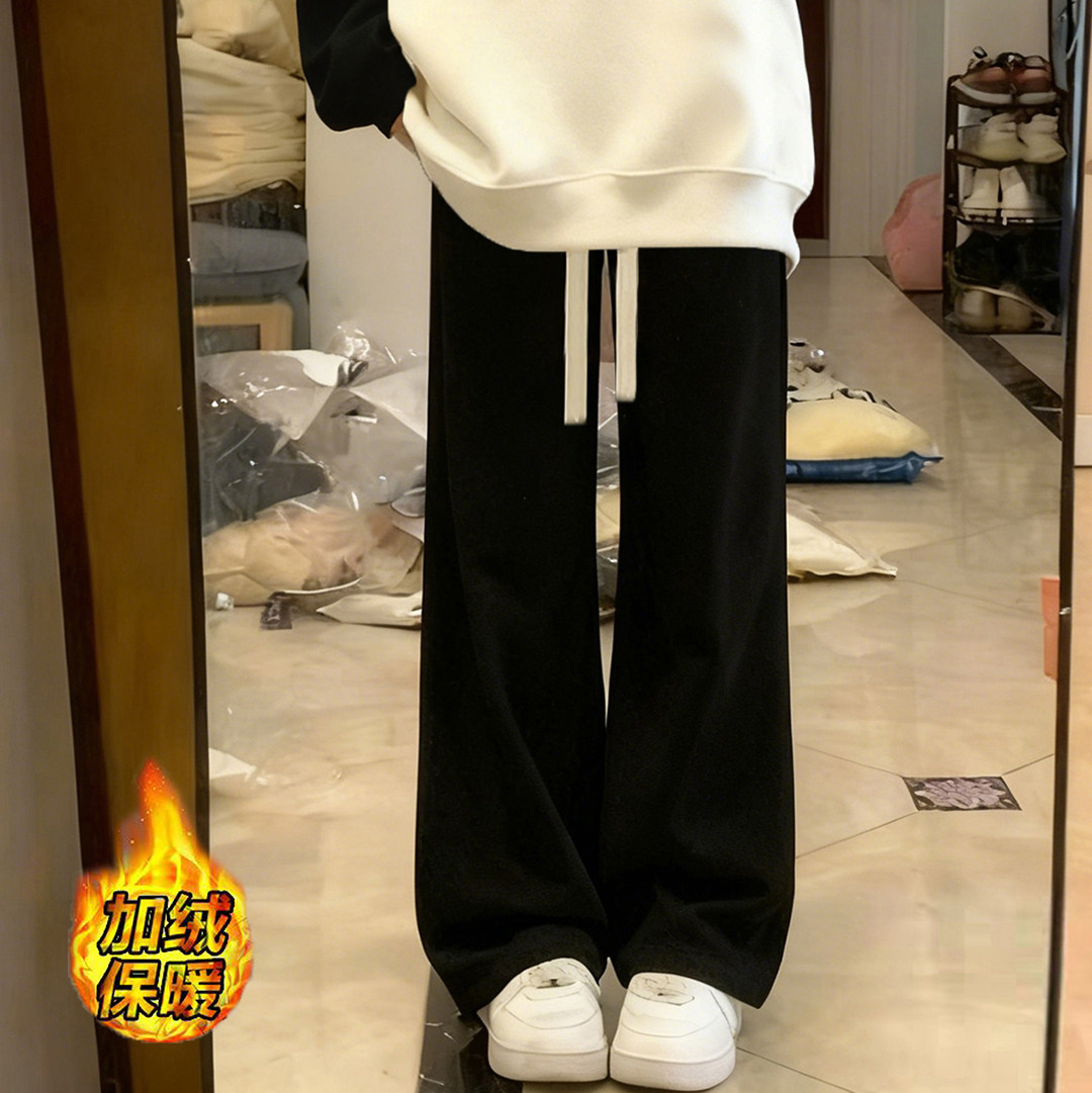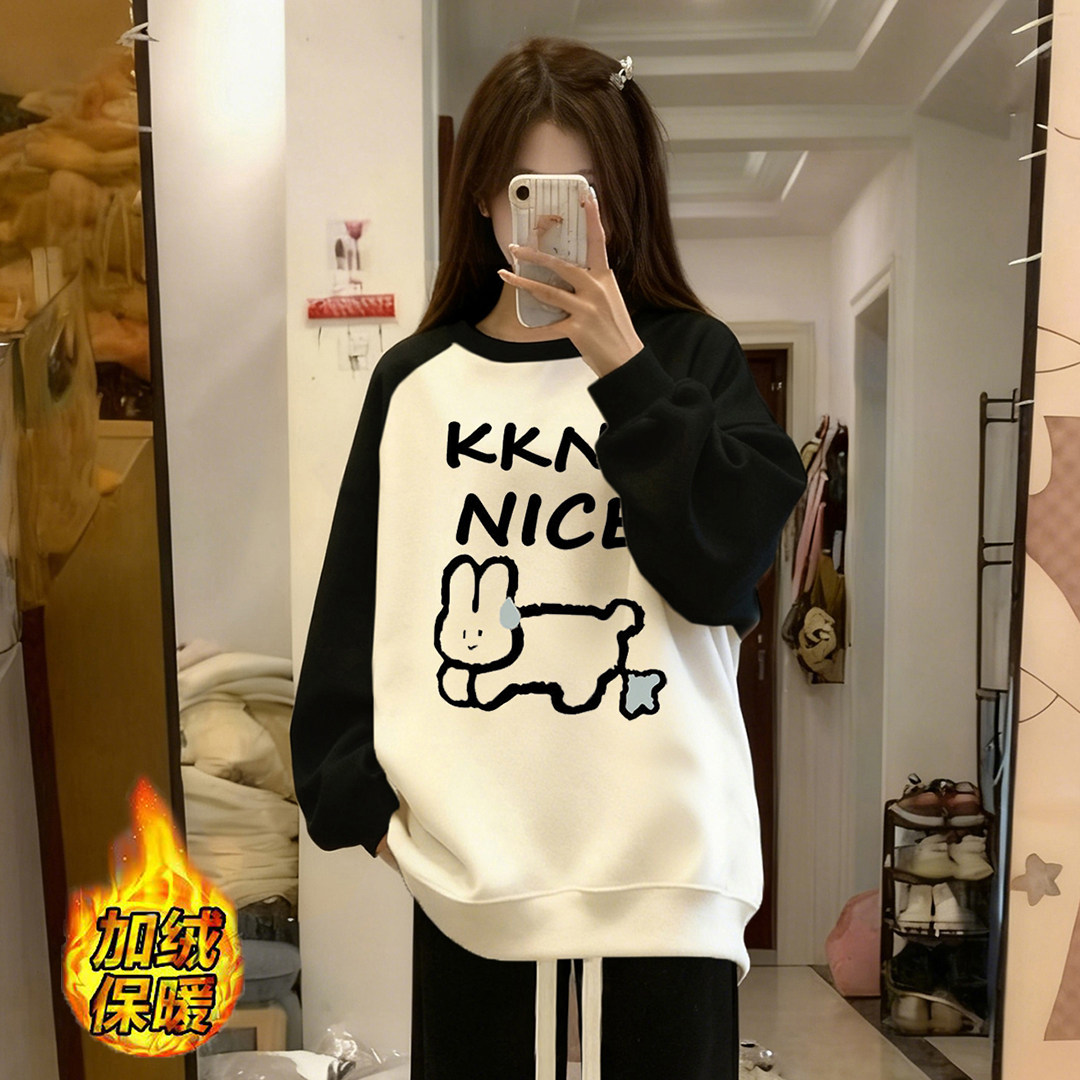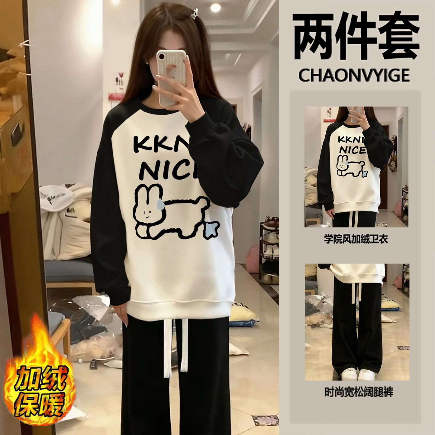 初中女生卫衣圆领加绒套装女款2025新款韩版宽松套头外套运动长裤