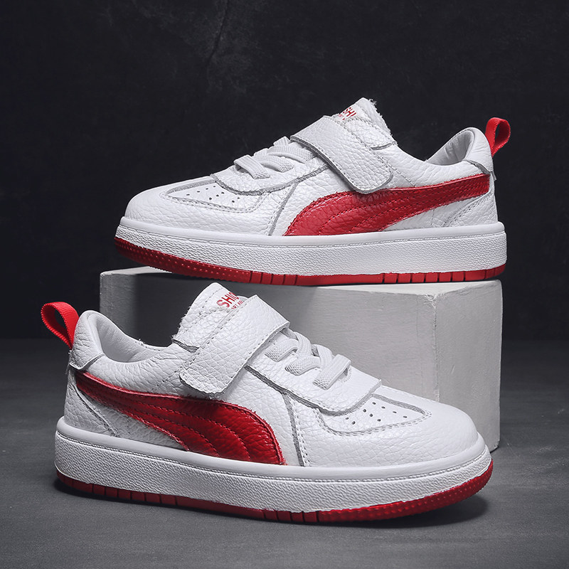 儿童真皮小白鞋男童鞋子春秋软底头层牛皮男孩板鞋女童白色运动鞋
