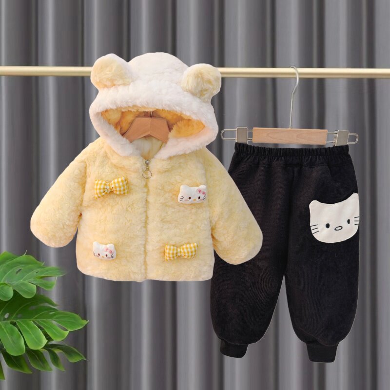 女童套装秋冬季2026新款洋气儿童冬装毛毛衣宝宝加绒加厚洋气时髦