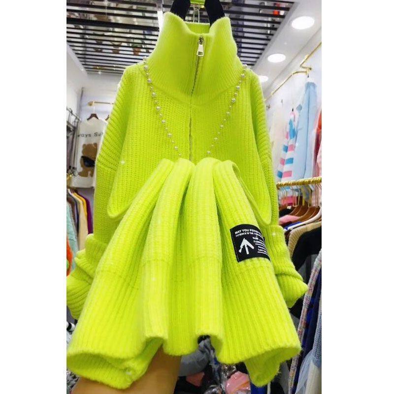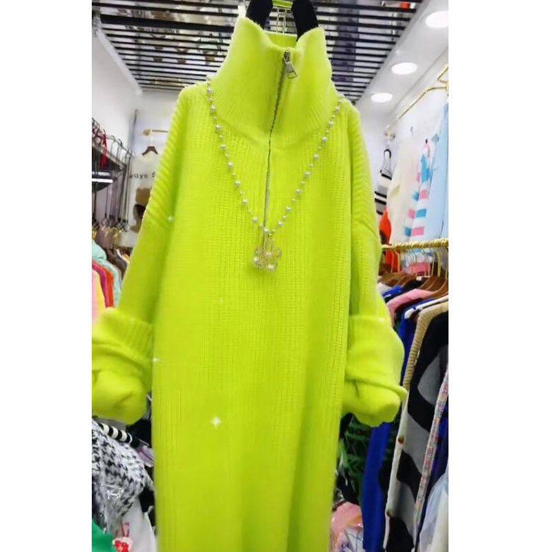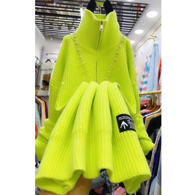 秋冬款洋气针织连衣裙女小个子小香风新款宽松高领外穿打底毛衣裙