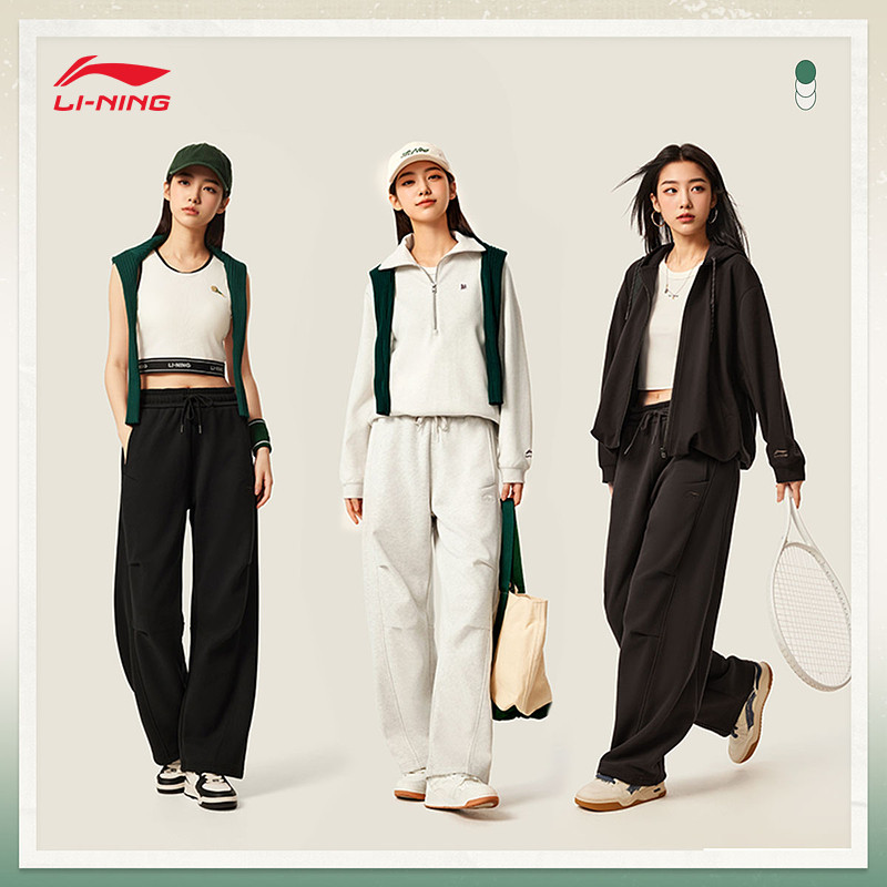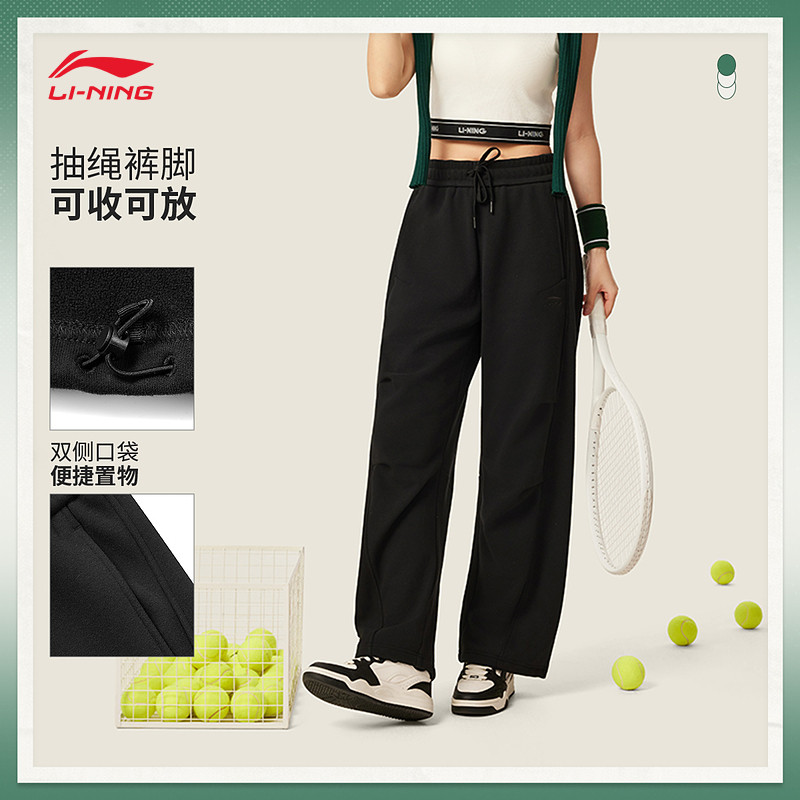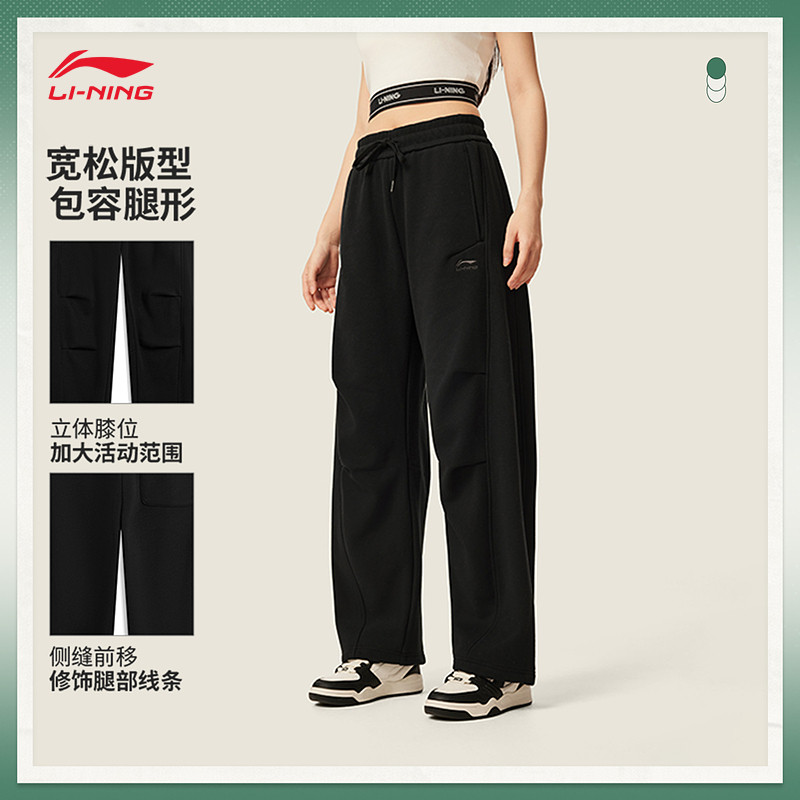 李宁运动服 运动时尚系列 女款直筒加绒保暖舒适宽松热力裤卫裤