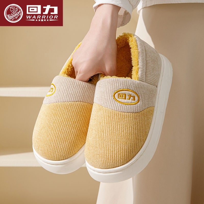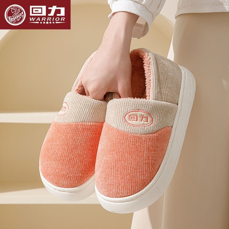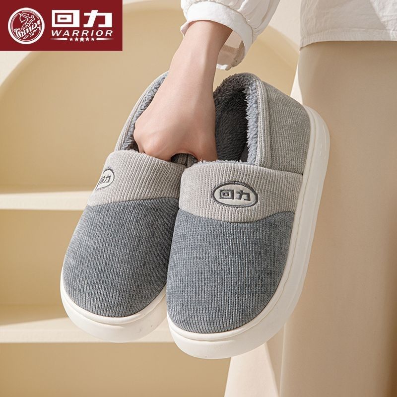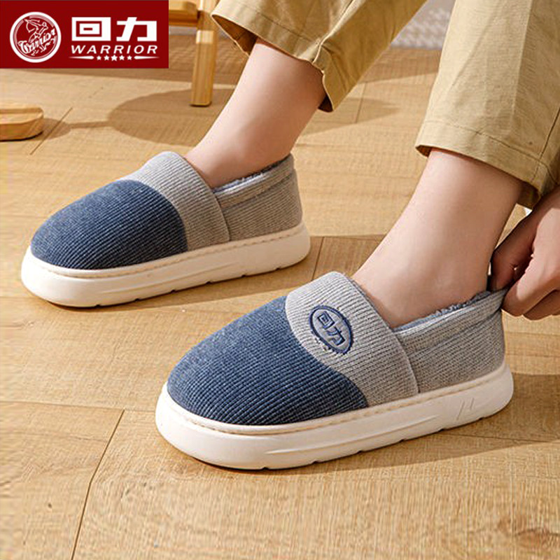 上海回力加绒棉鞋包跟男女士冬季室内保暖厚底毛绒家居鞋防滑H154