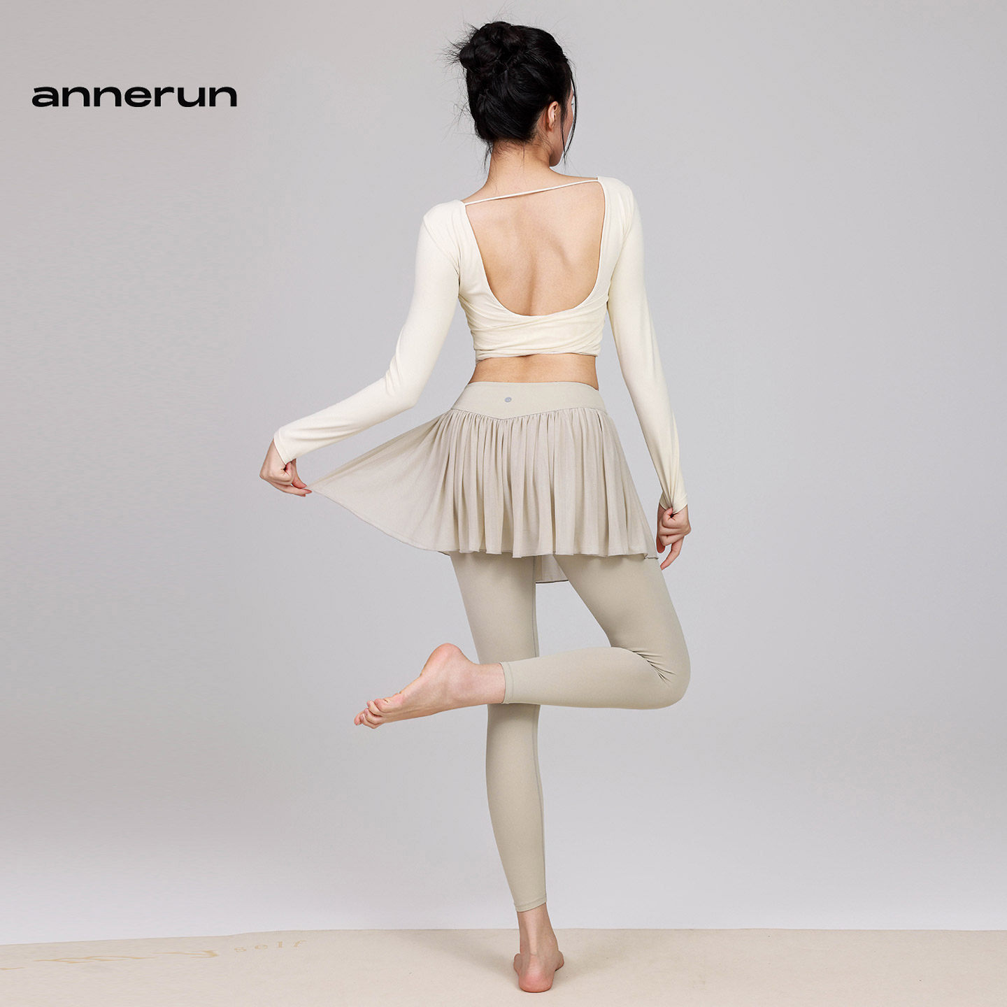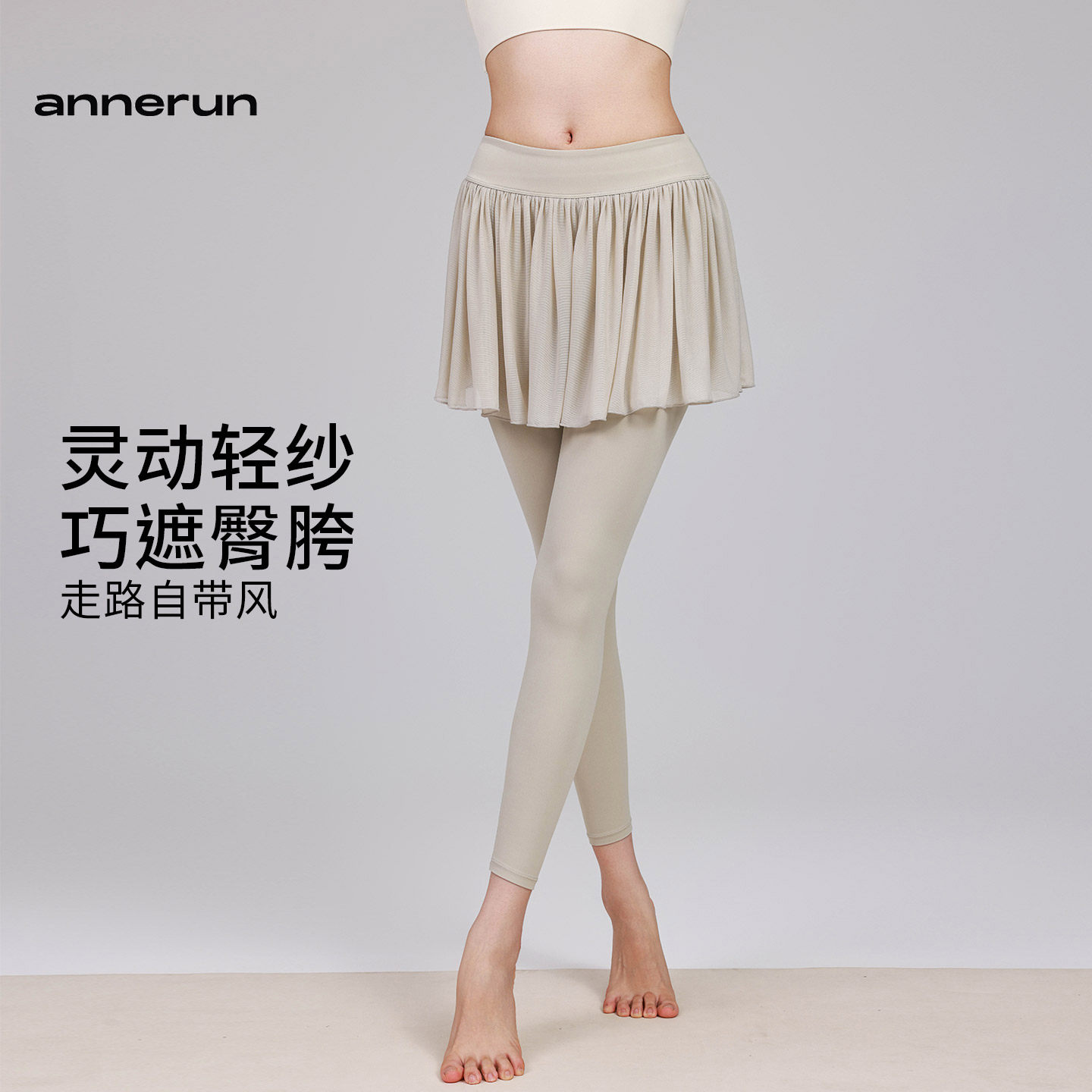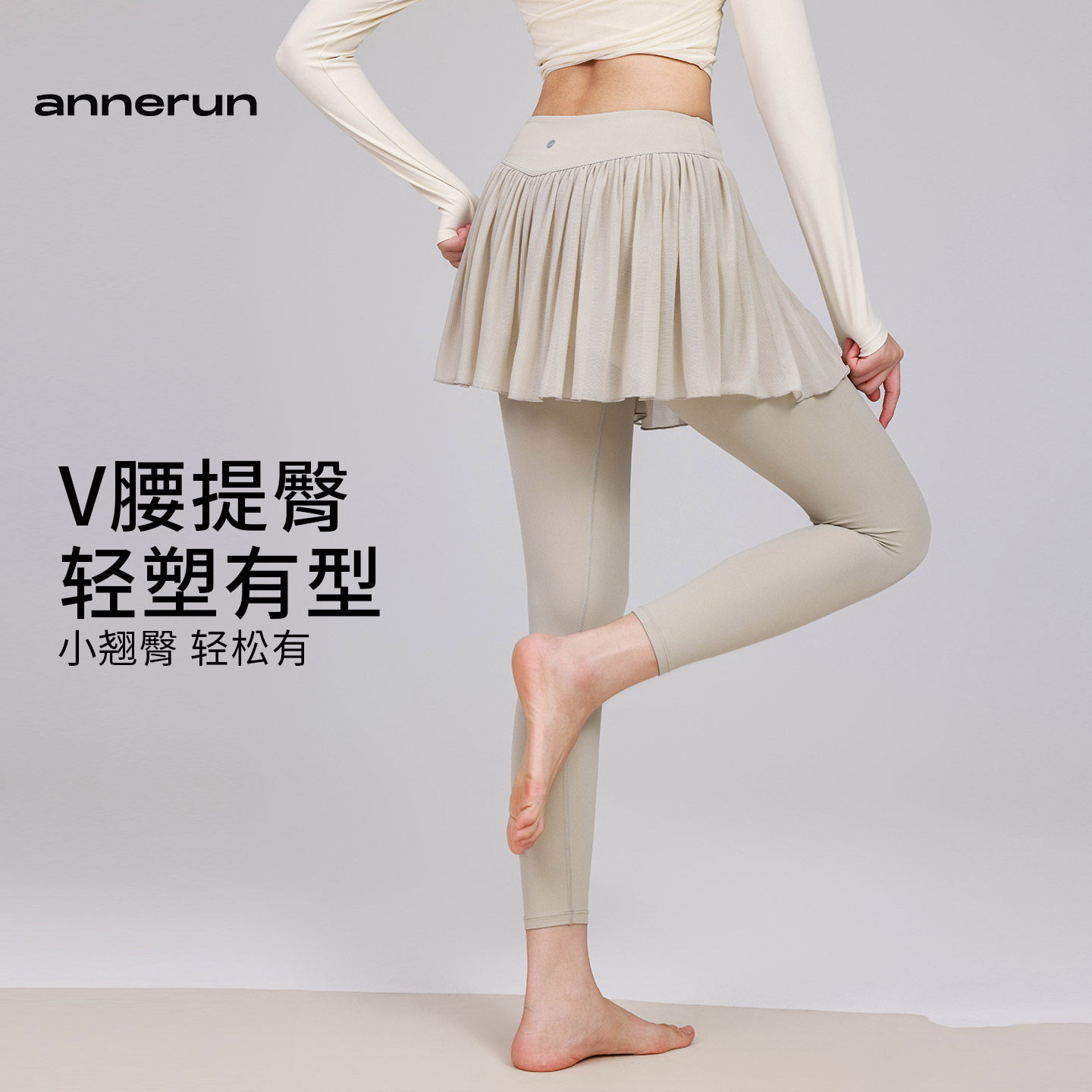 annerun瑜伽裤外穿不尴尬V腰提臀运动裙裤假两件高腰显瘦健身裤子