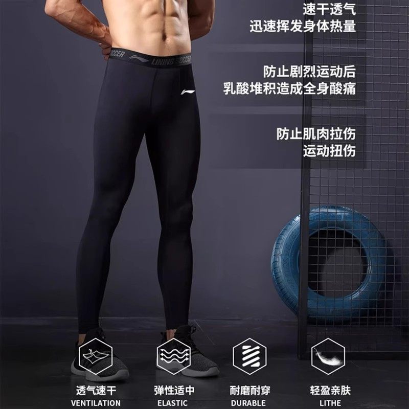 李宁跑步紧身裤压缩裤专业秋冬马拉松高弹速干男士运动健身长裤