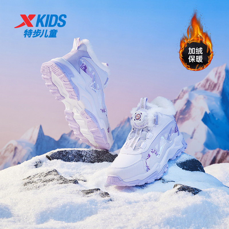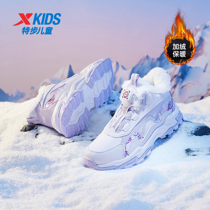 特步儿童鞋2026冬季款女童鞋高帮加绒保暖棉鞋防滑中大童运动鞋子