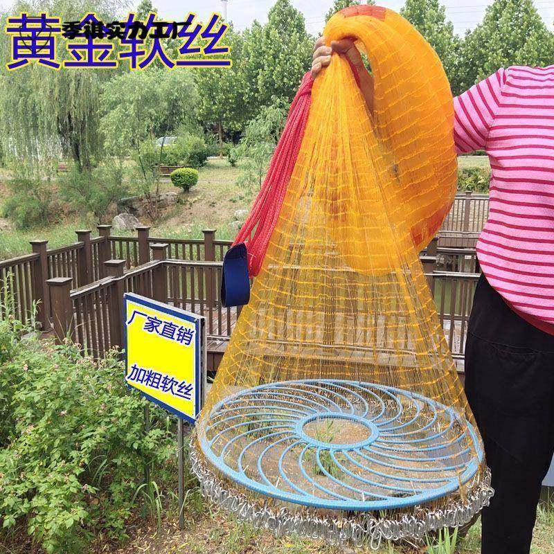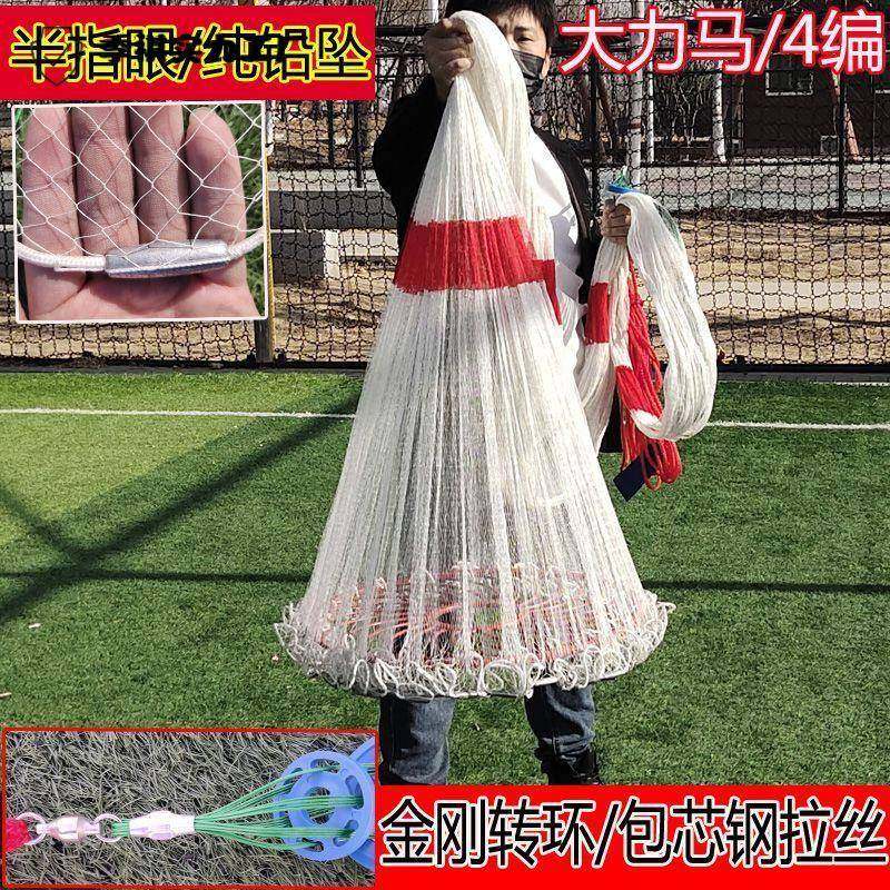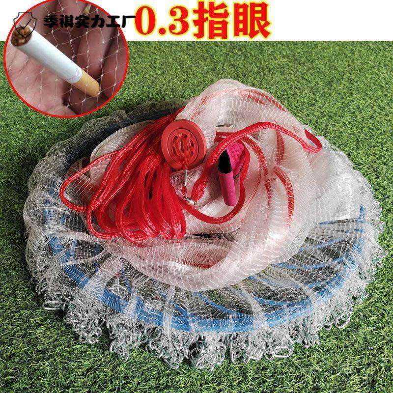 手抛网大力马易三分网眼小眼鱼虾铁链渔圆盘网大飞盘式撒网新款
