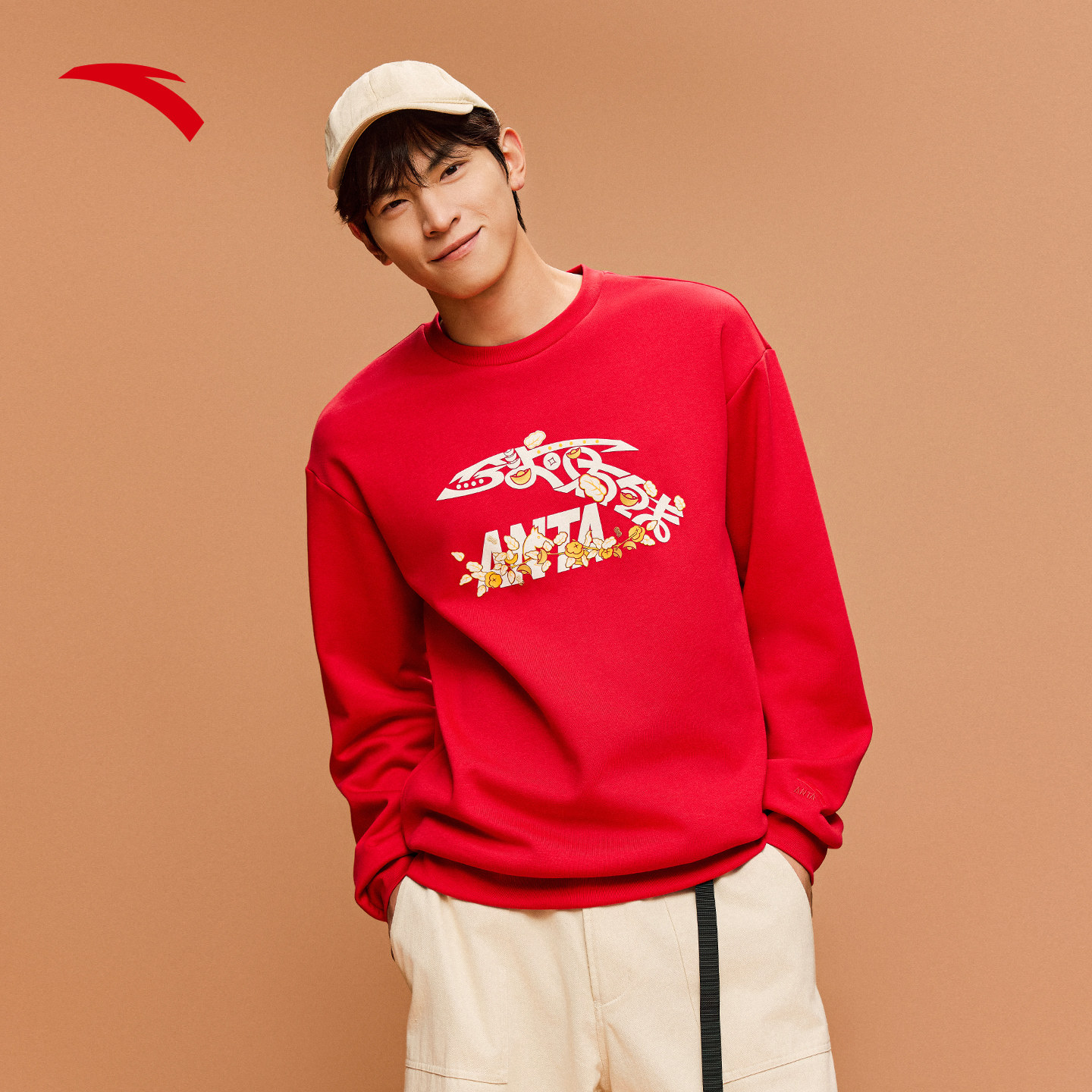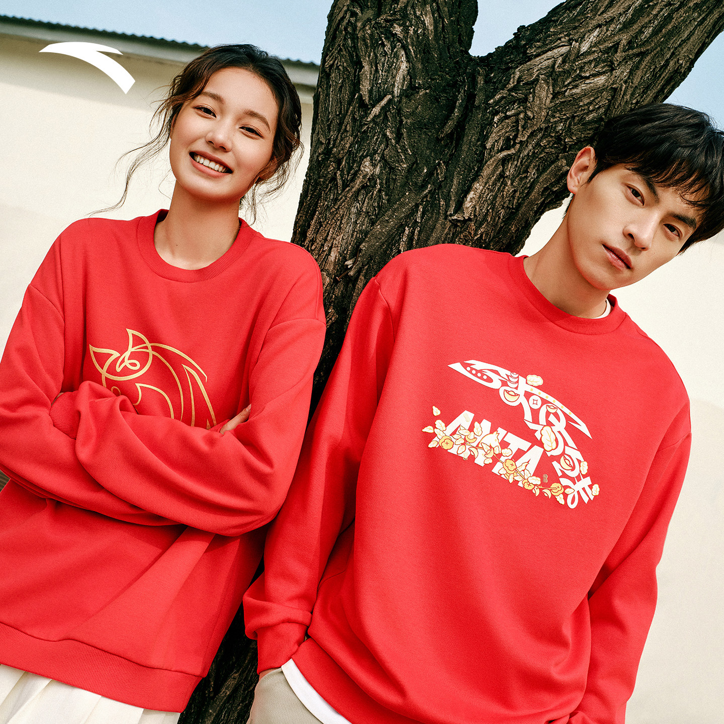安踏好事发生卫衣男2025新年冬季新款加绒保暖红色马年本命年上衣