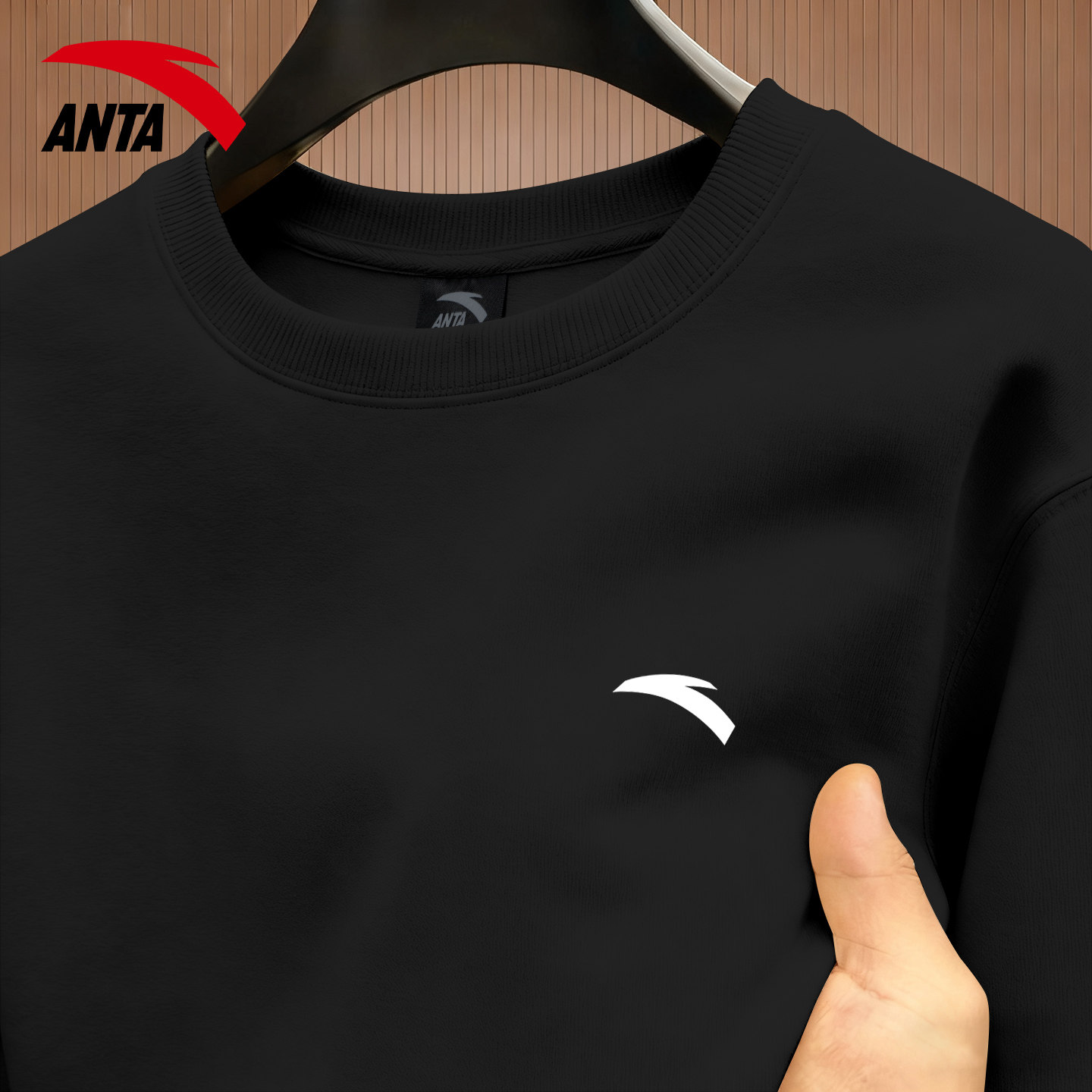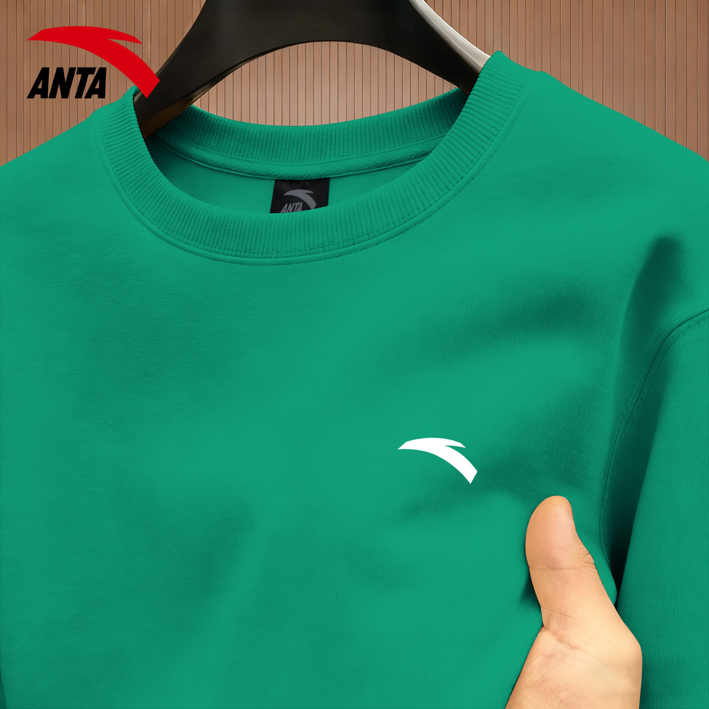 安踏卫衣男士秋冬季新款宽松衣服长袖加绒运动上衣白色内搭打底衫