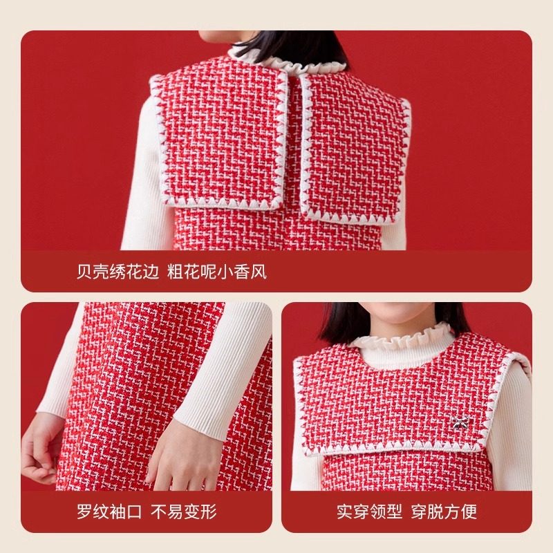 巴拉巴拉女童短裙套装中大童红色连衣裙儿童长袖两件套秋装童装潮