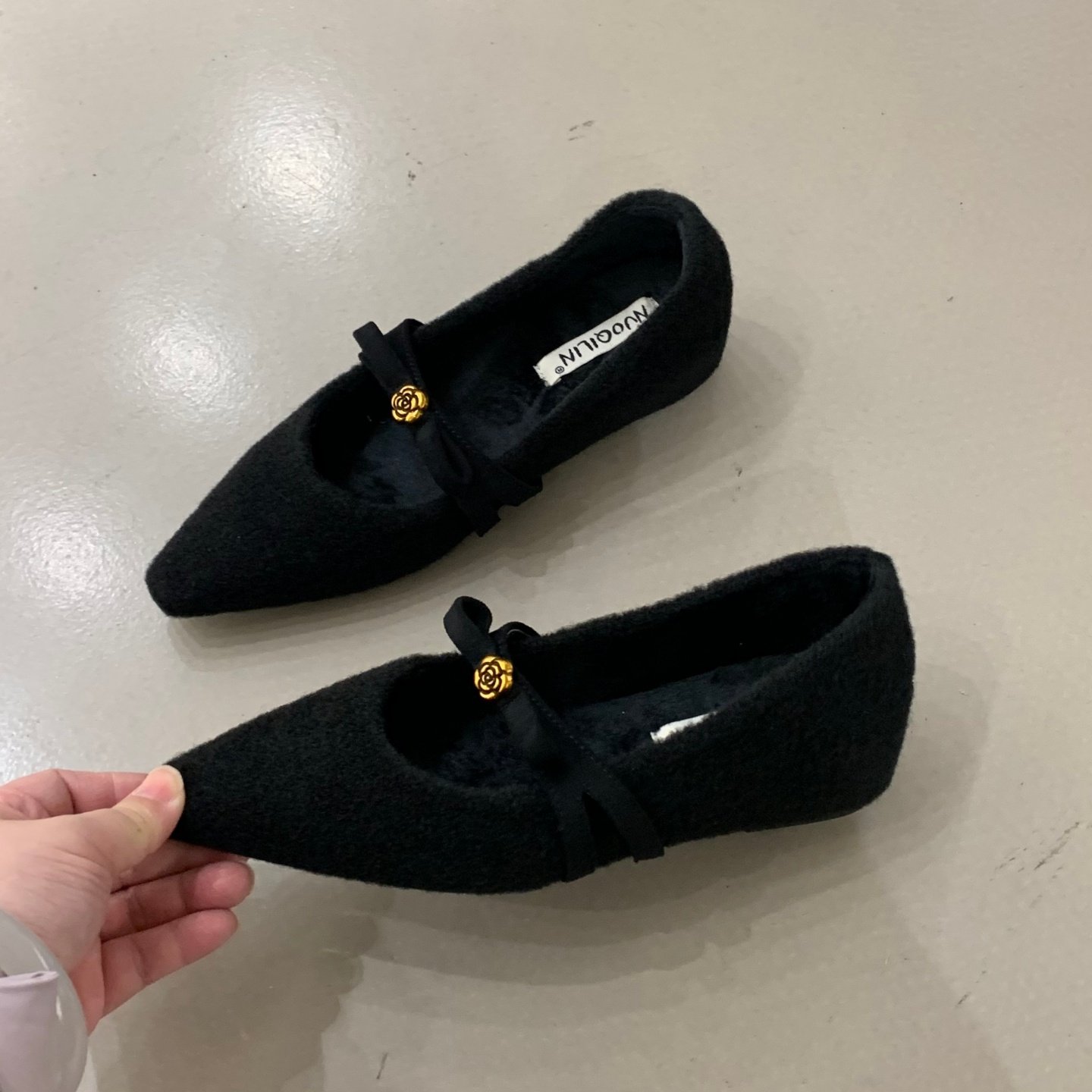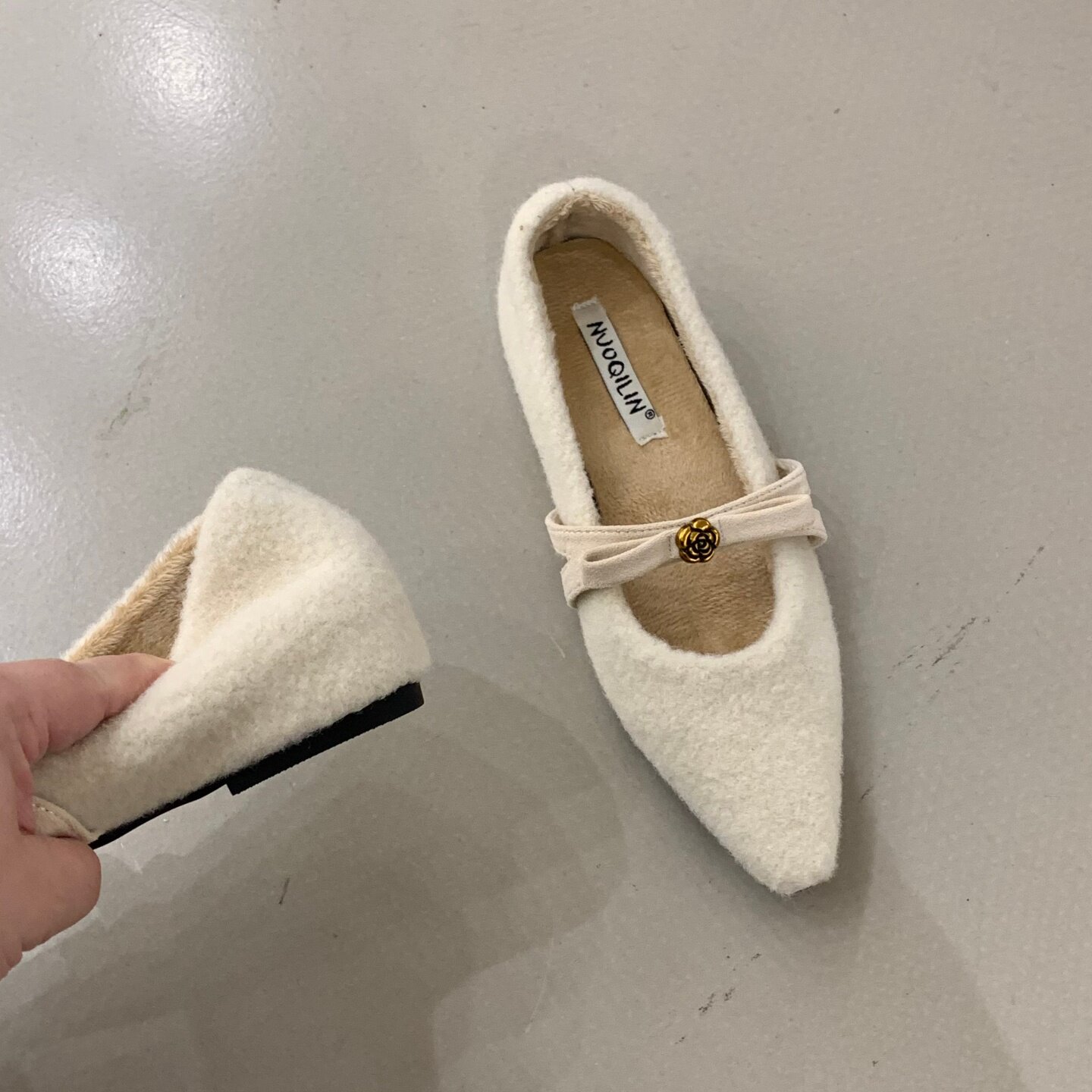 法式内增高蝴蝶结尖头单鞋女2025新款浅口毛毛鞋温柔风百搭仙女鞋
