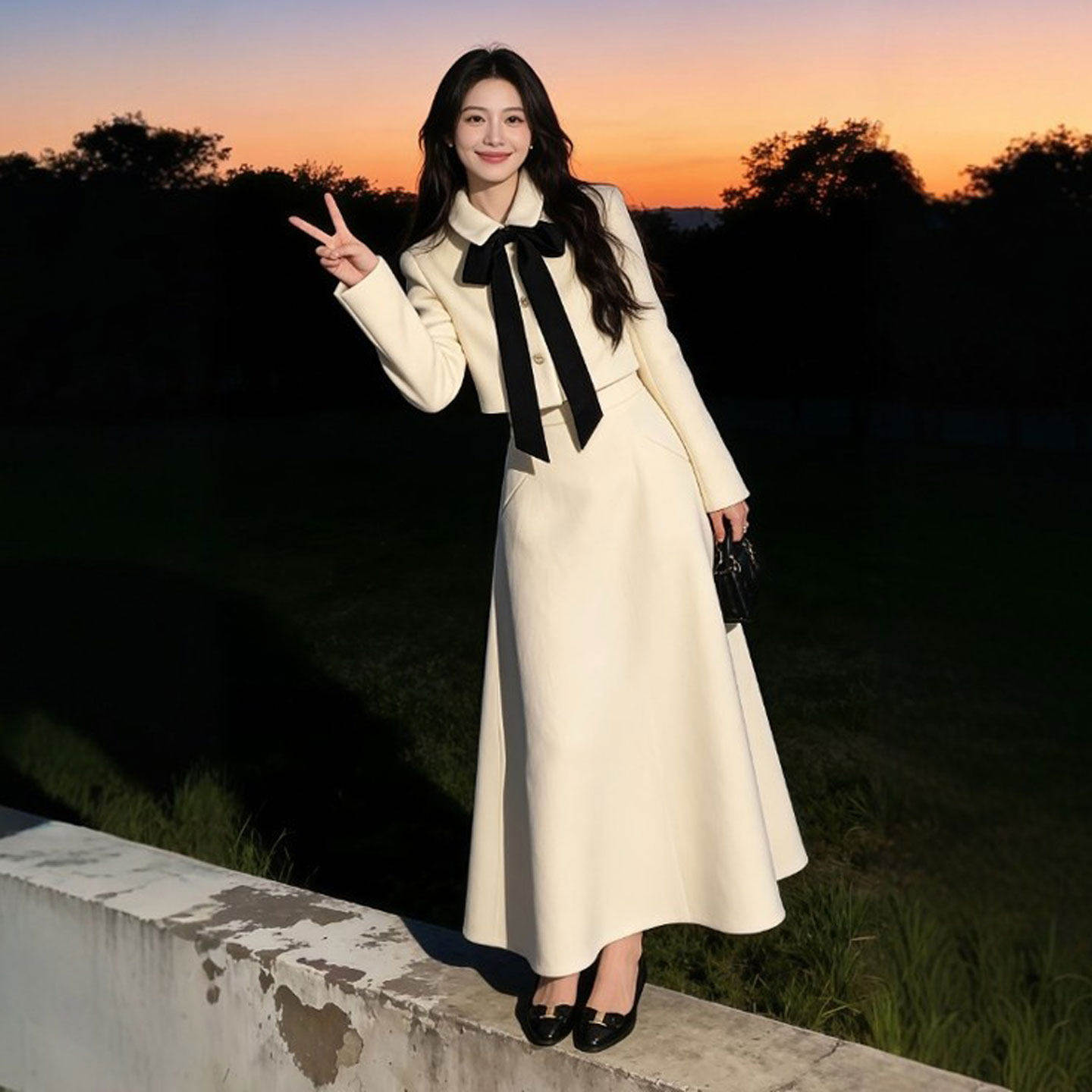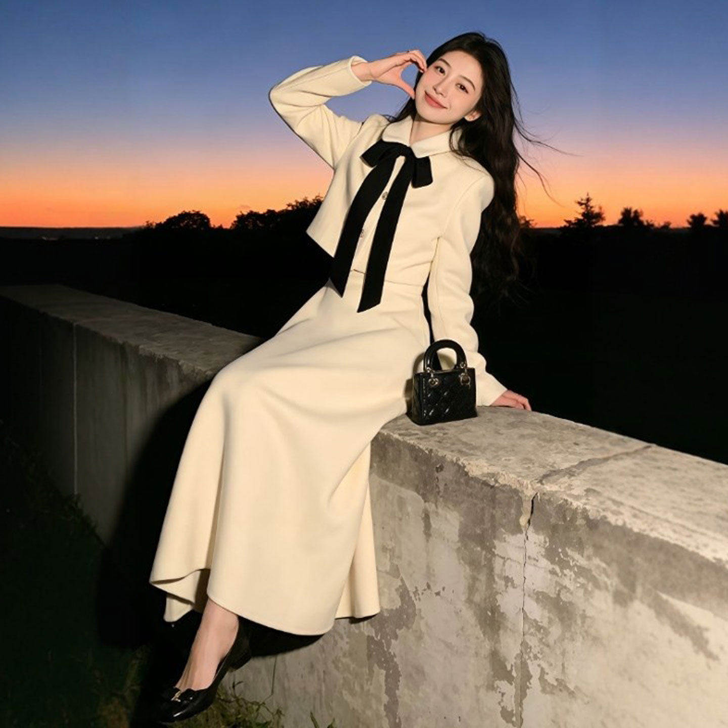 法式小香风杏色连衣裙子女2026春季新款巨好看高级感气质套装长裙