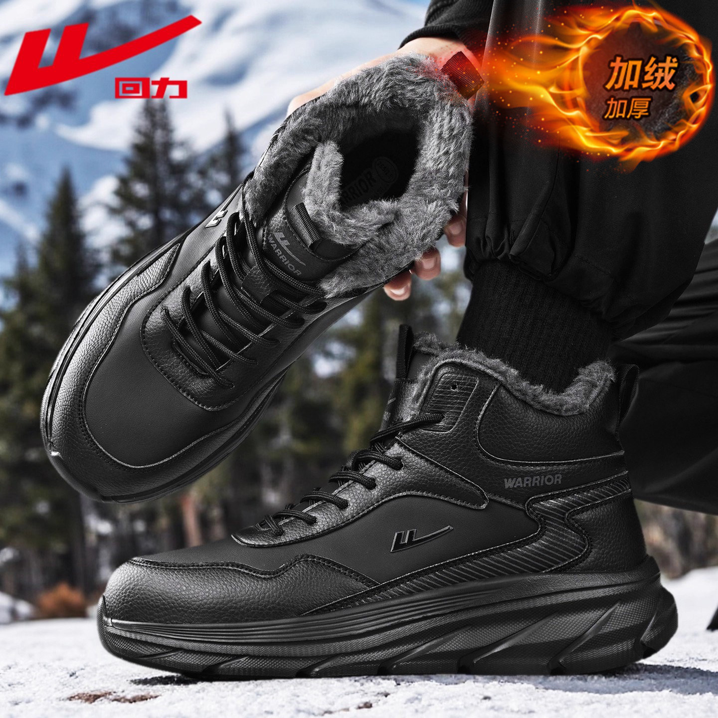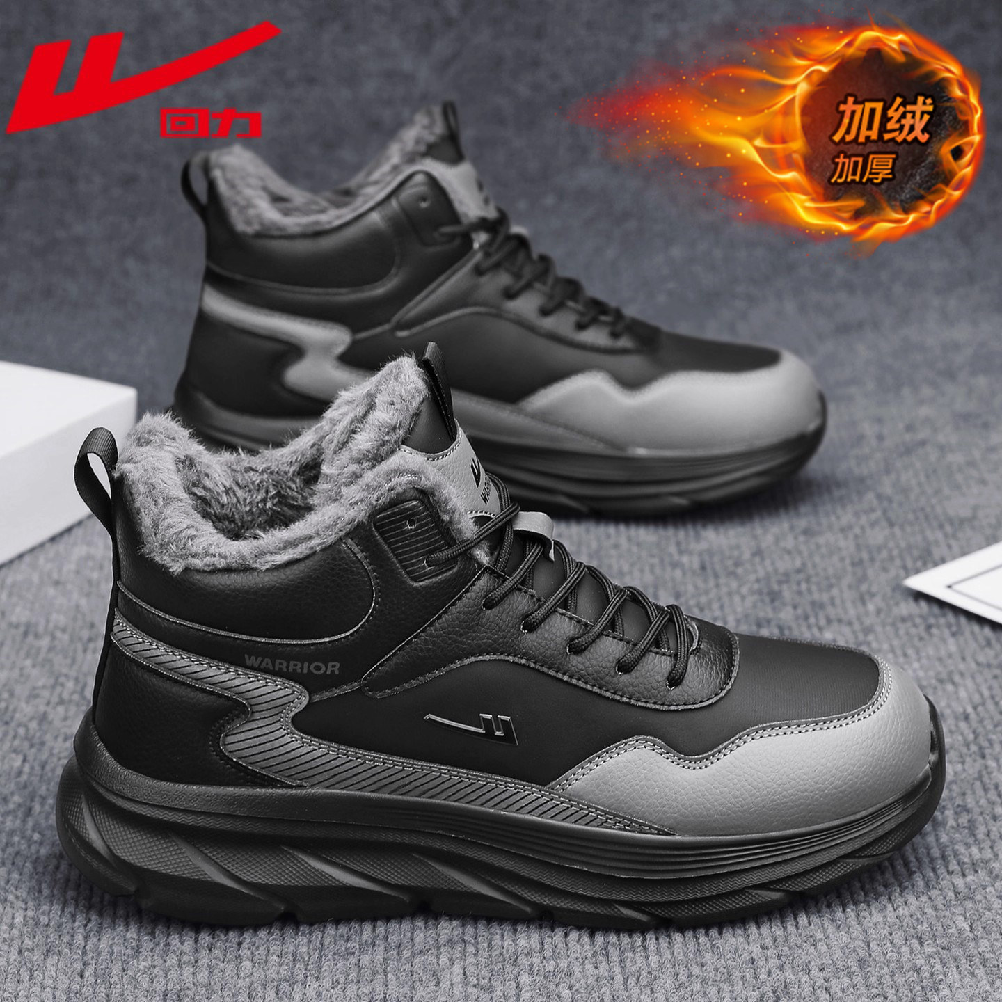 回力男鞋2025新款冬季加绒保暖棉鞋高帮运动休闲皮鞋舒适爸爸鞋子