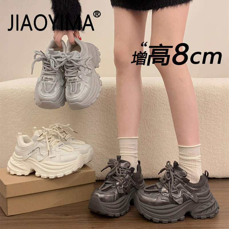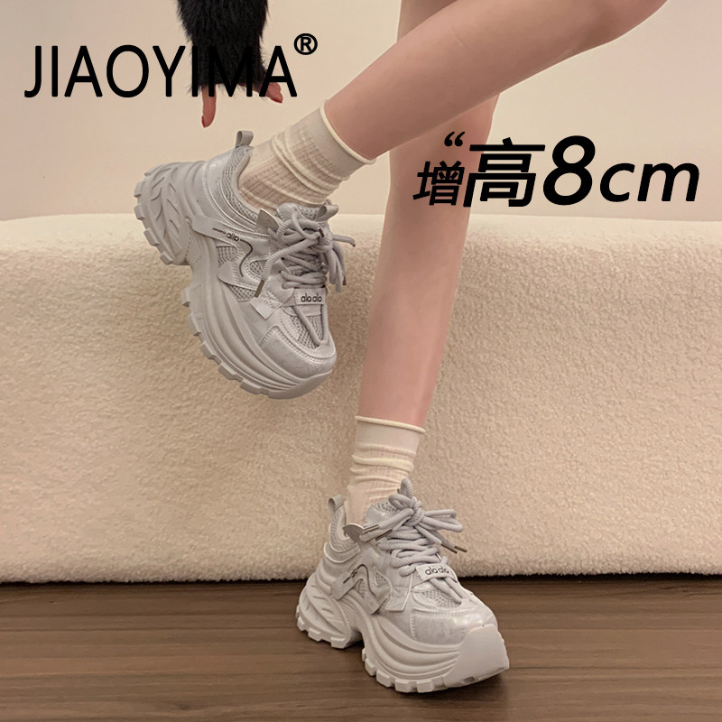 内增高灰色老爹鞋女款2026新款春季松糕厚底休闲鞋百搭白色运动鞋