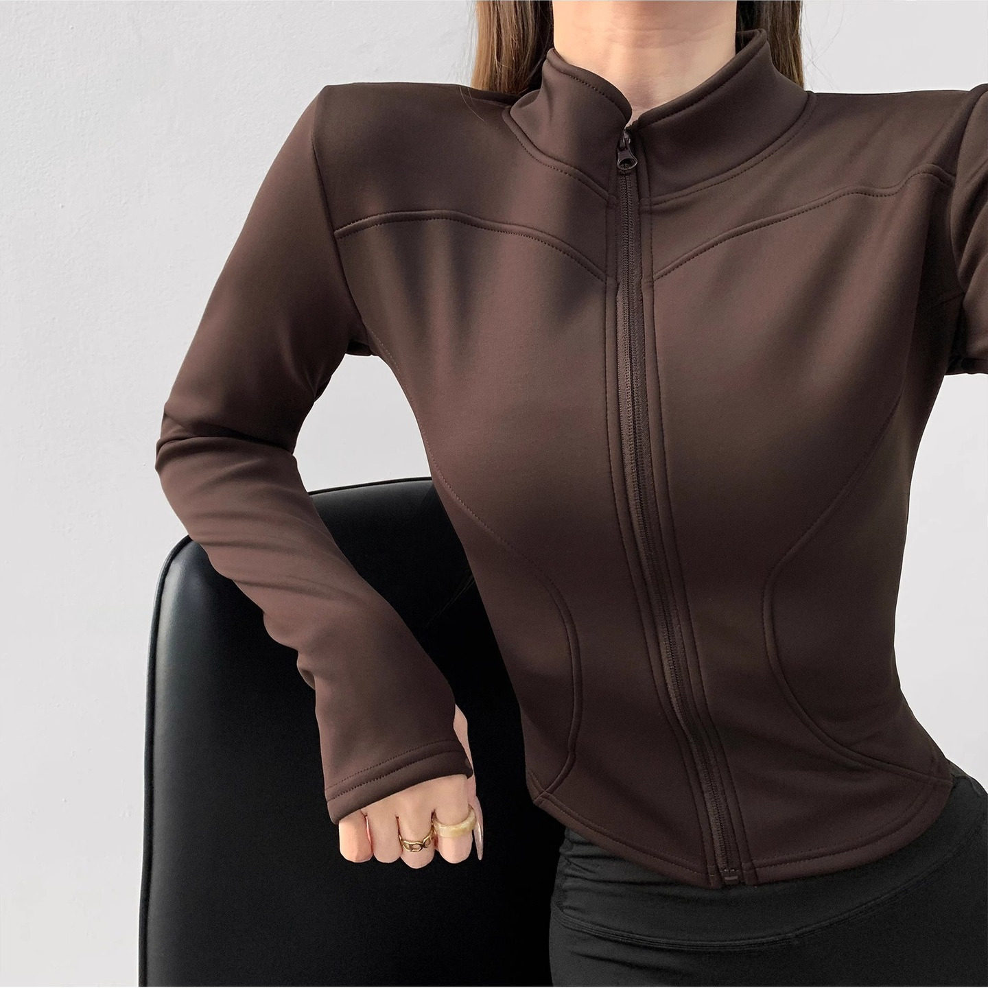 立领加绒运动外套女收腰显瘦百搭健身服弹力瑜伽服加厚上衣春季款