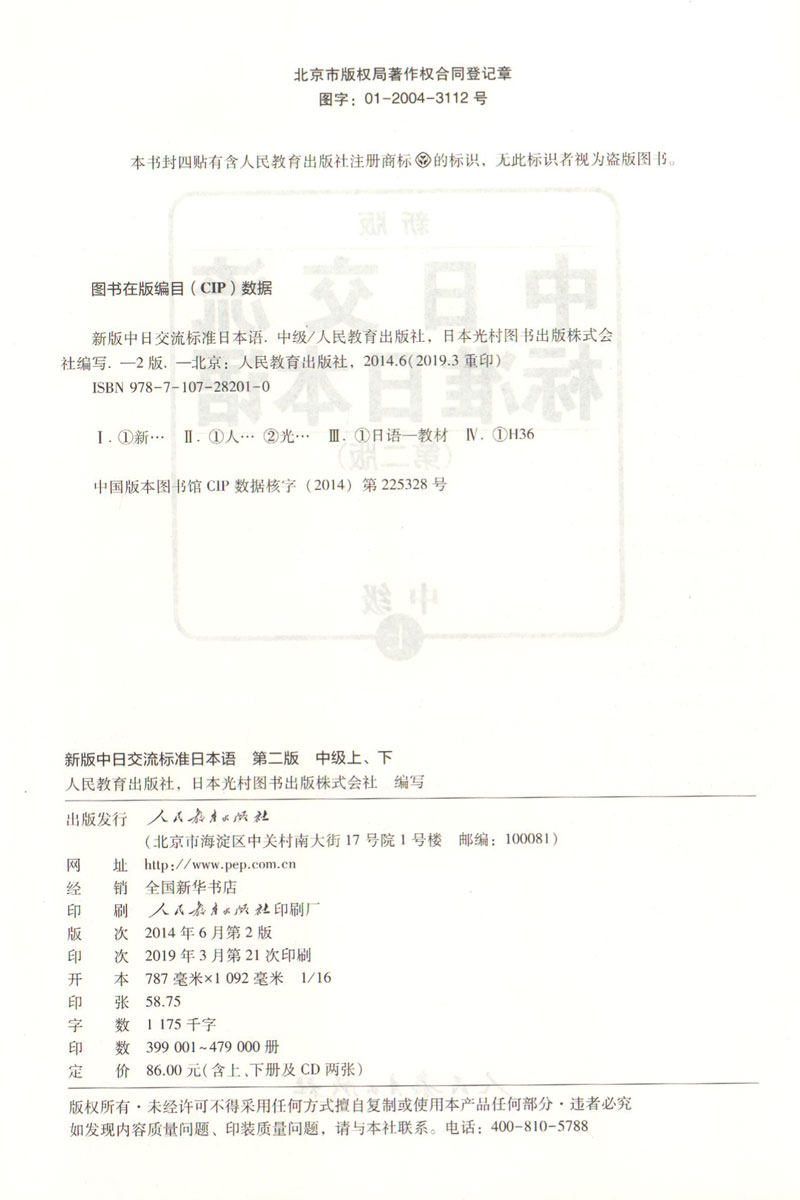 新版中日交流标准日本语 中级上下册(第二版)含两张光盘 标准日语自学入门教程 日语入门 自学书籍 人民教育出版社