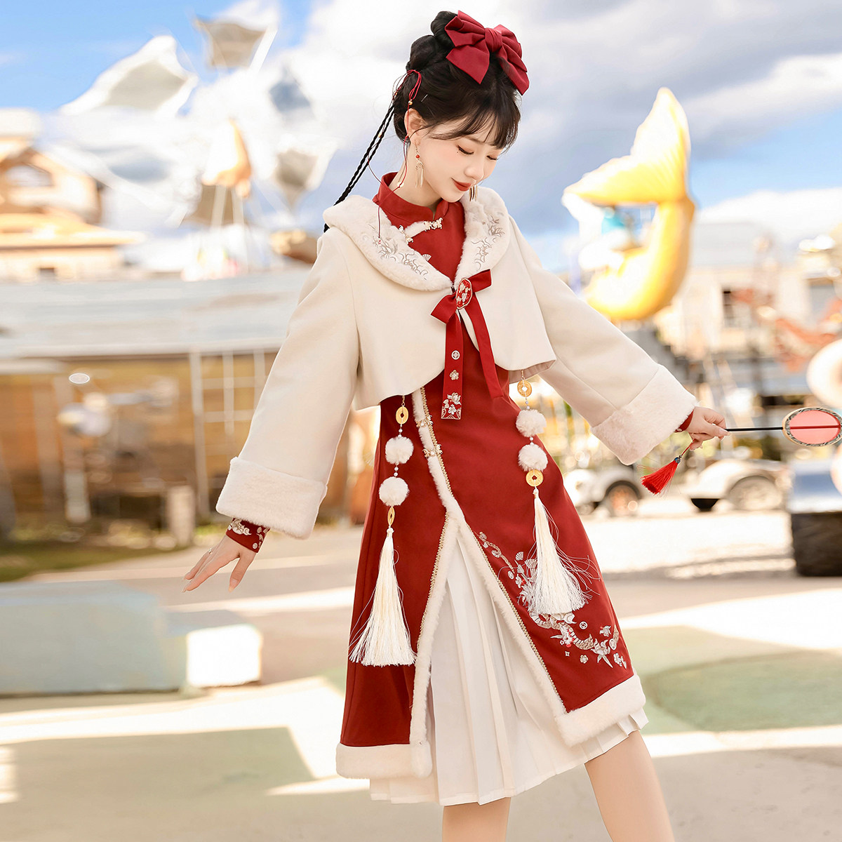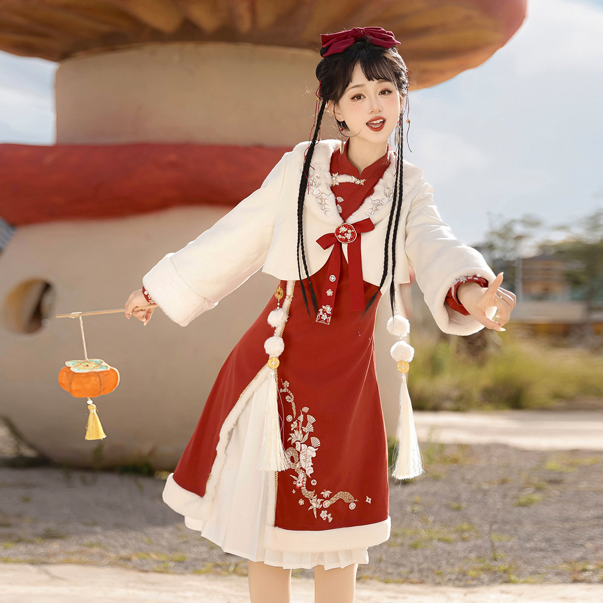 连衣裙女新秋冬2025国风日常小个子新中式蛇年红色拜年服新年战袍
