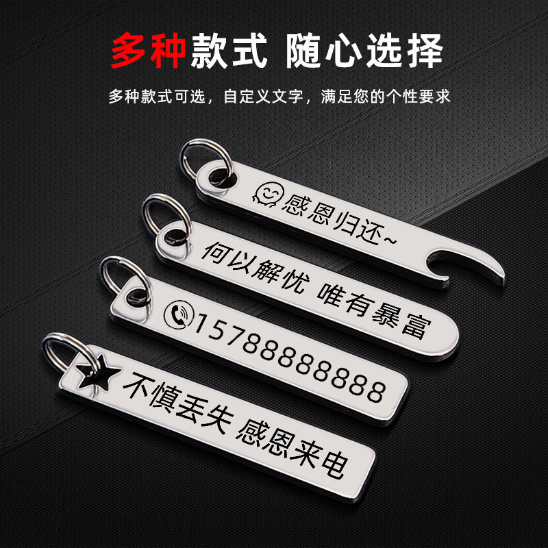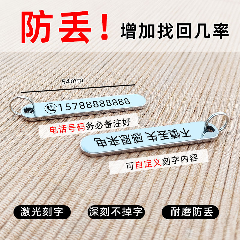 防丢号码牌钥匙扣挂件男女汽车链不锈钢挂饰电话手机定制激光刻字