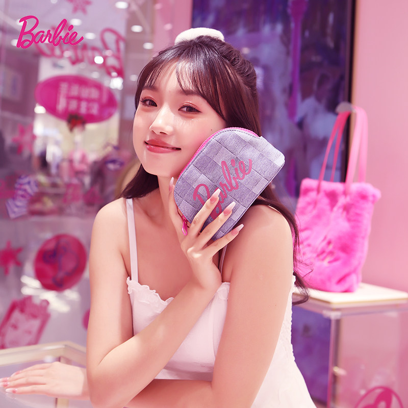 Barbie芭比官方正品旅行便携化妆包手拿包收纳包包容量大女款礼物