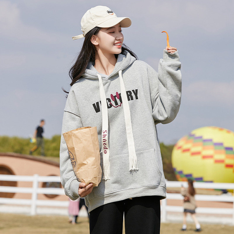 初中生女孩加绒卫衣加厚潮流冬装新款休闲宽松高中学生套头外衣潮