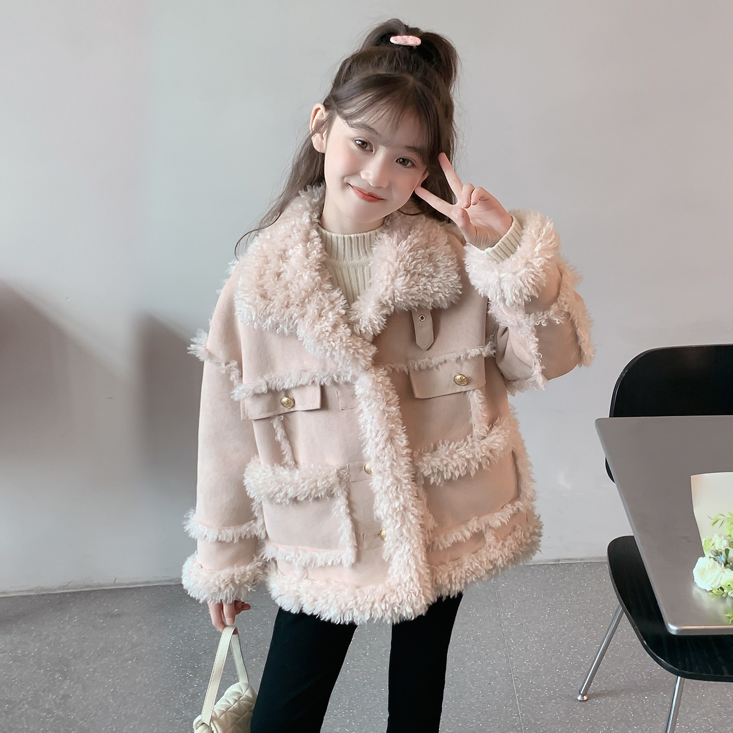女童外套2026新款冬装儿童洋气时髦爆款加绒加厚女孩冬装网红大衣