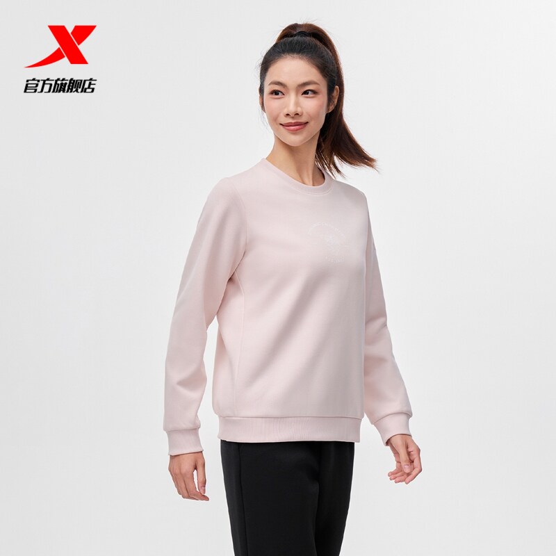 特步运动加绒卫衣女款2025秋冬新款保暖立领内搭长袖975428920027