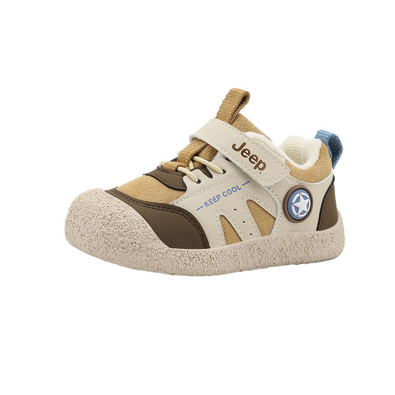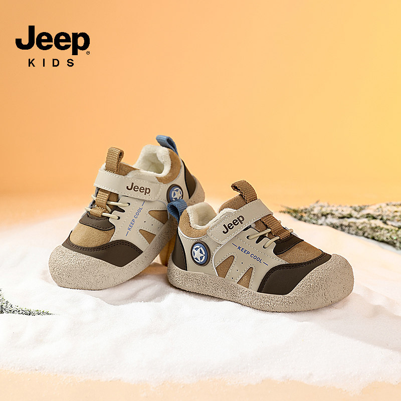 Jeep儿童冬季轻便魔术贴运动鞋女童休闲防踢男童加绒保暖宝宝鞋子