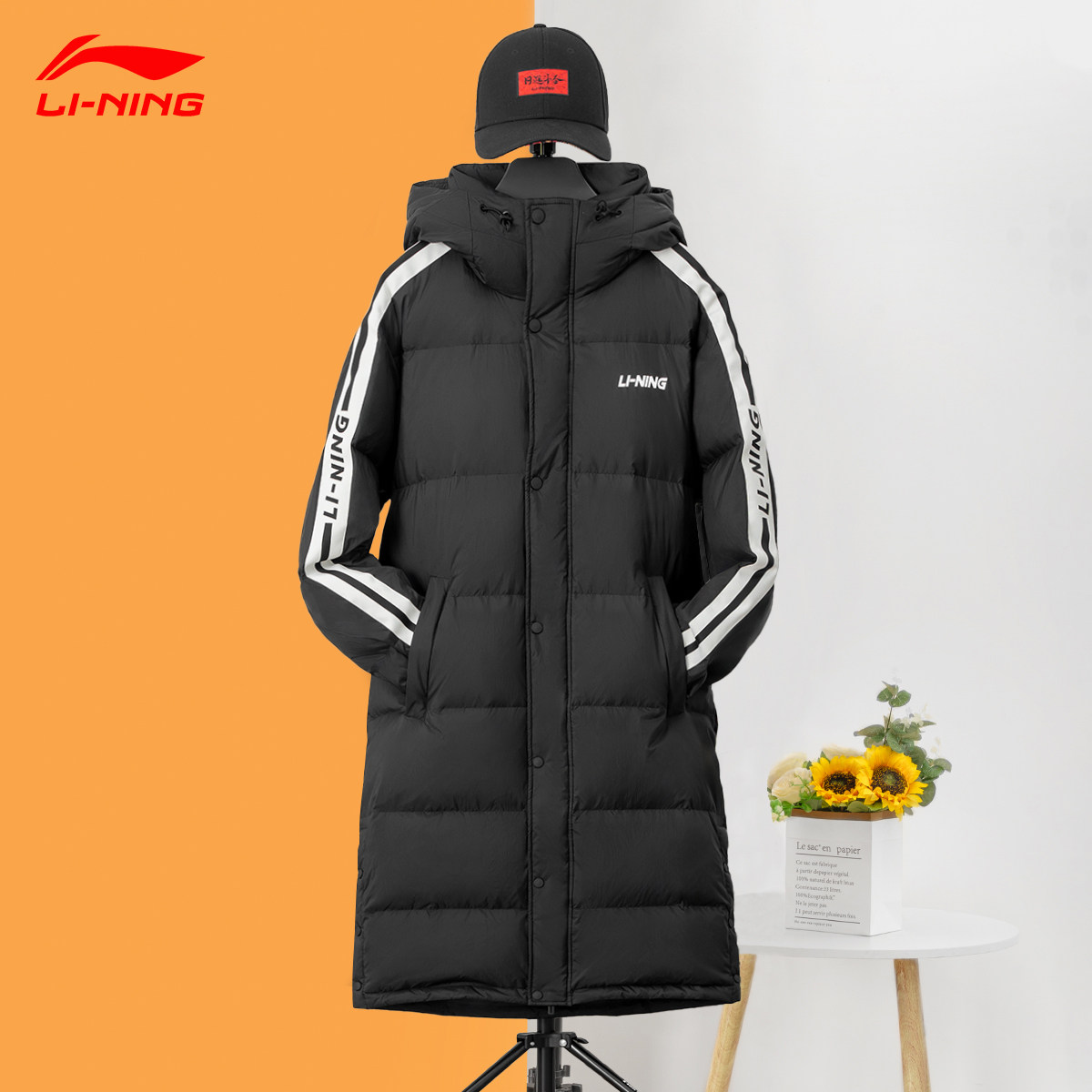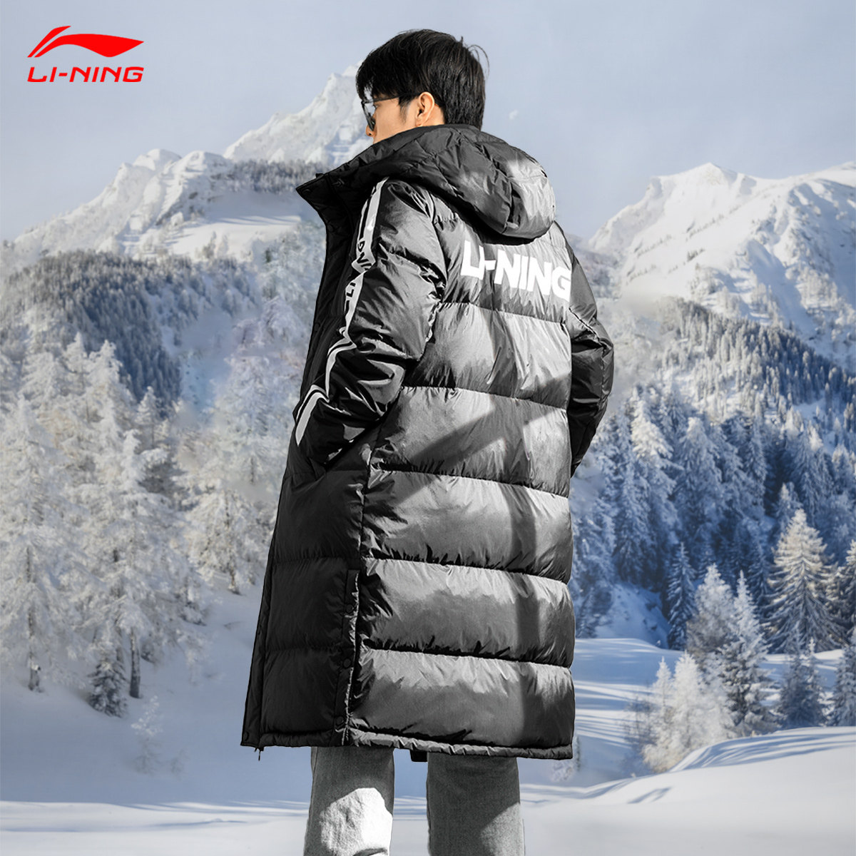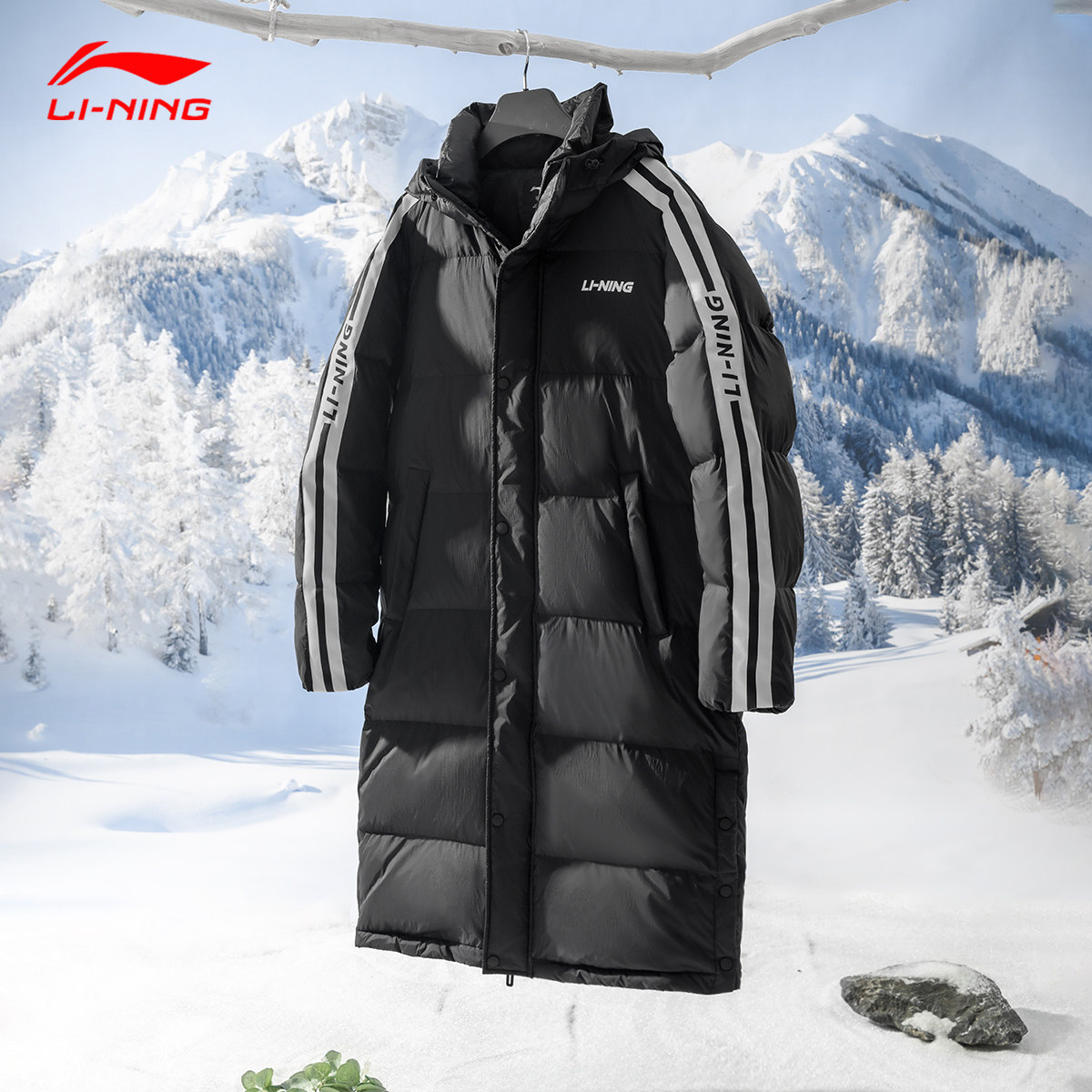 李宁长款羽绒服男款2024冬季新款青少年加长保暖长版羽绒服外套女